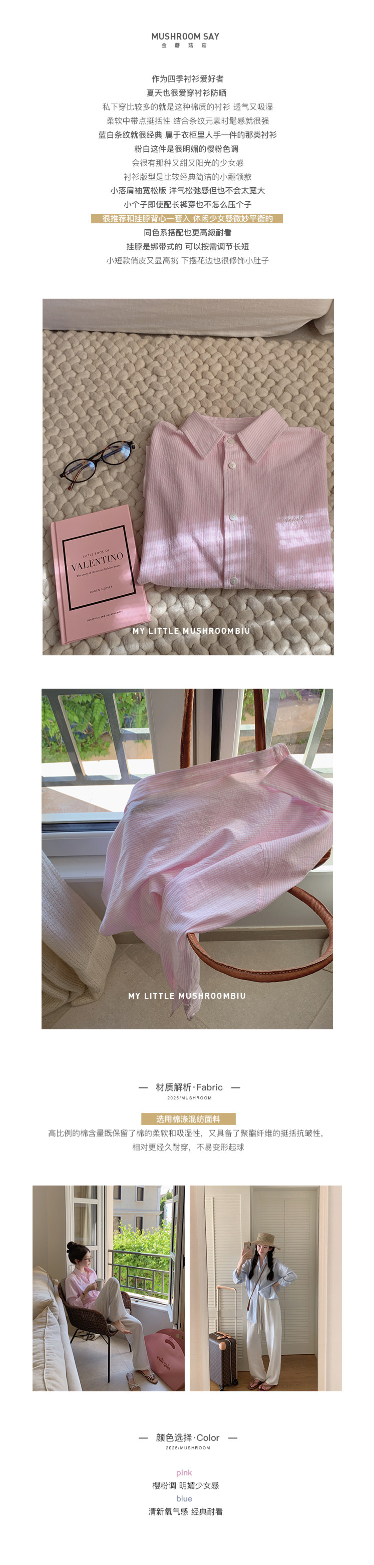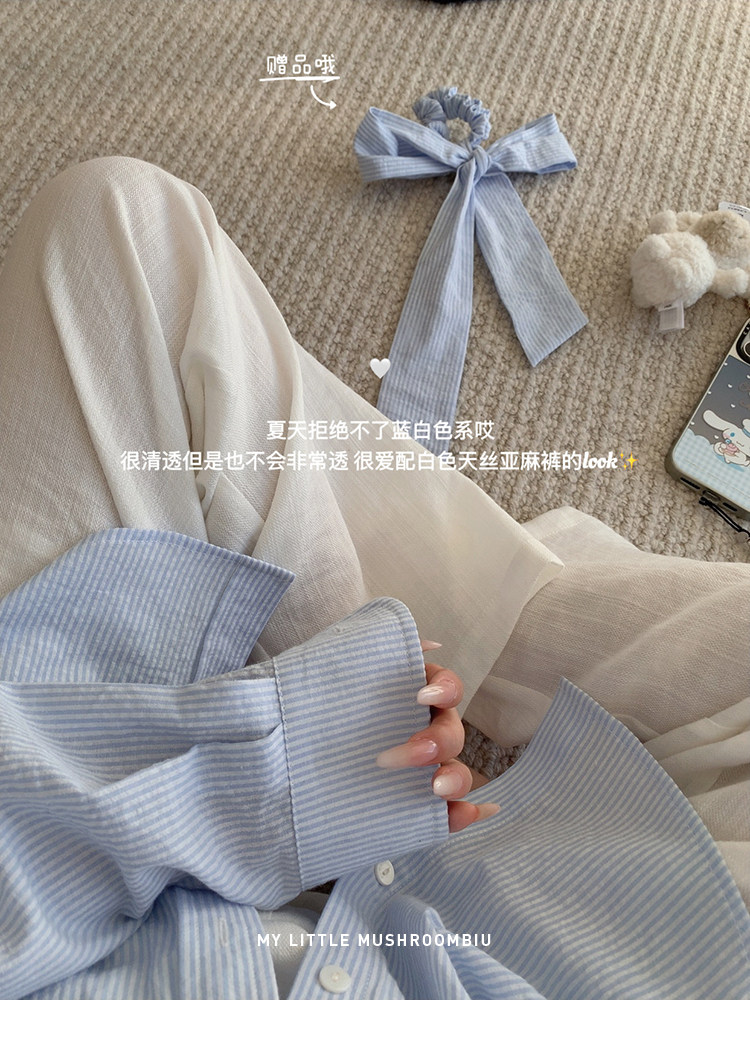 金蘑菇菇 自由明媚的盛夏 / 少女感条纹防晒衬衫套组