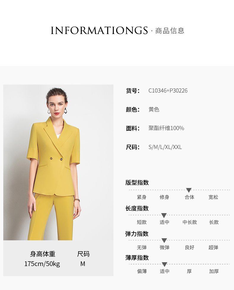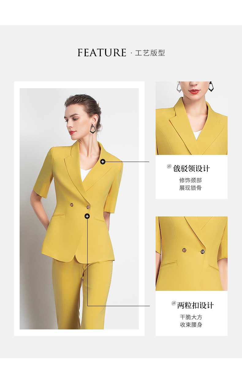 IWY/高端黄色西装套装女韩版休闲美容院工装干练职业装OL 213129C1+P3