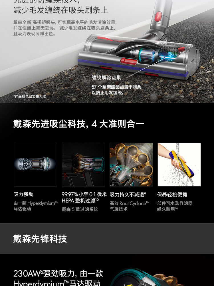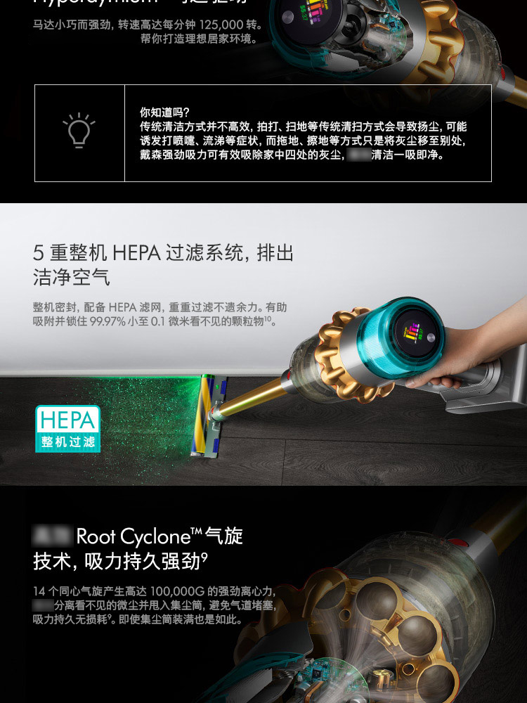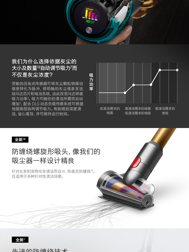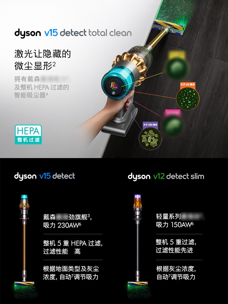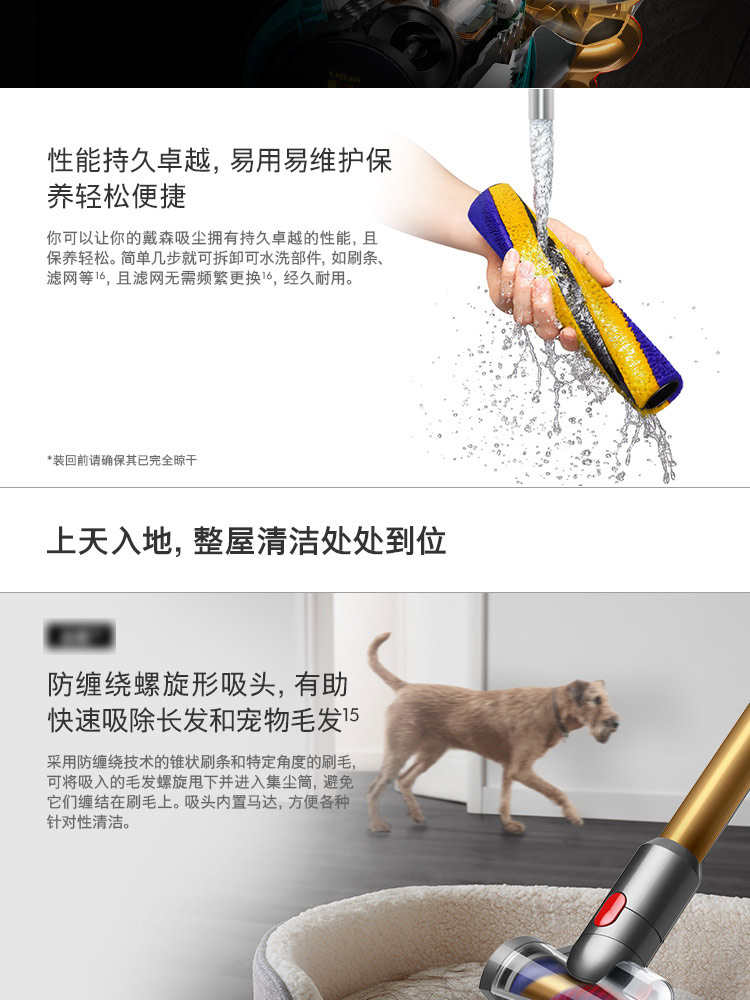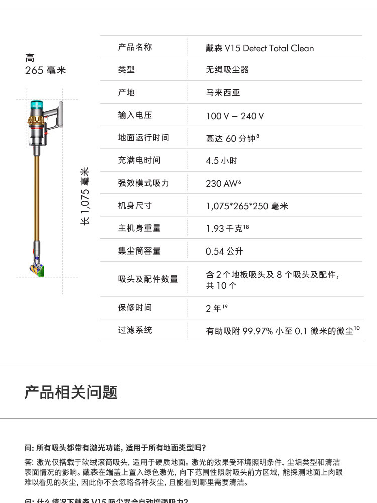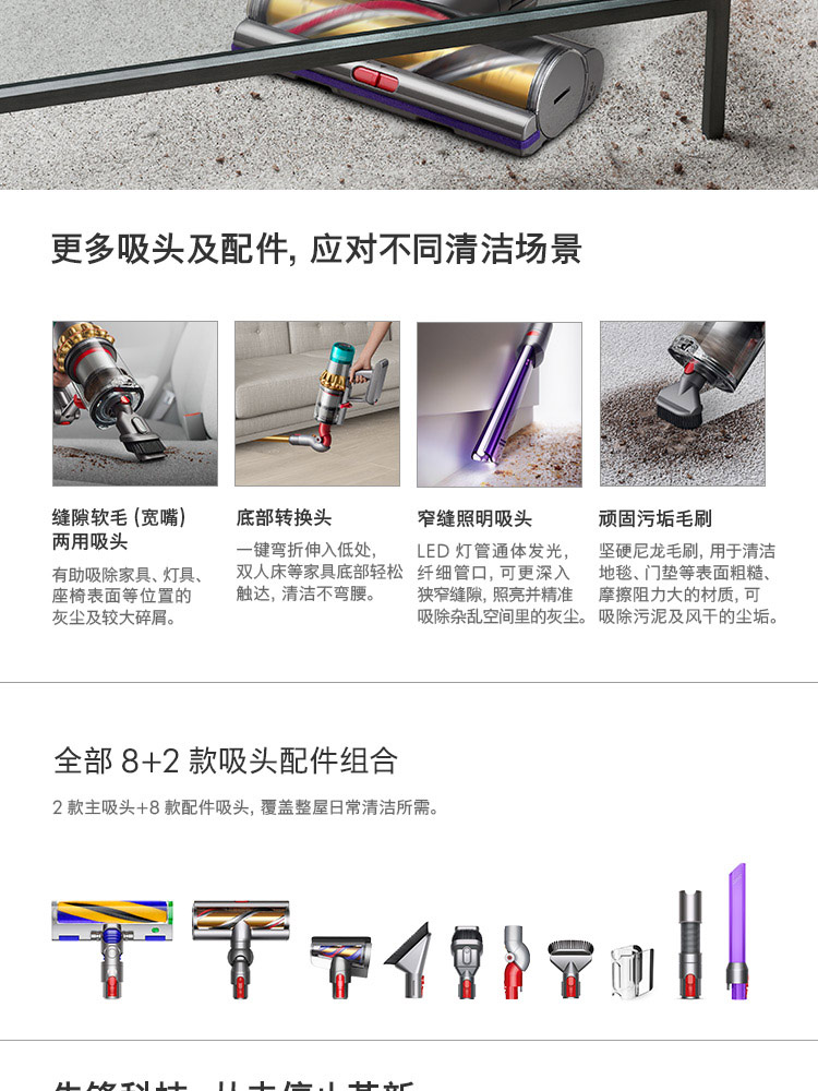 【新款上市】Dyson/戴森 V15 detect total clean 新款手持无线吸尘器 亮金色【8+2款吸头配件组合】