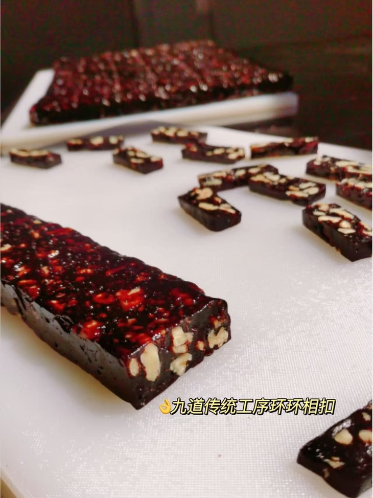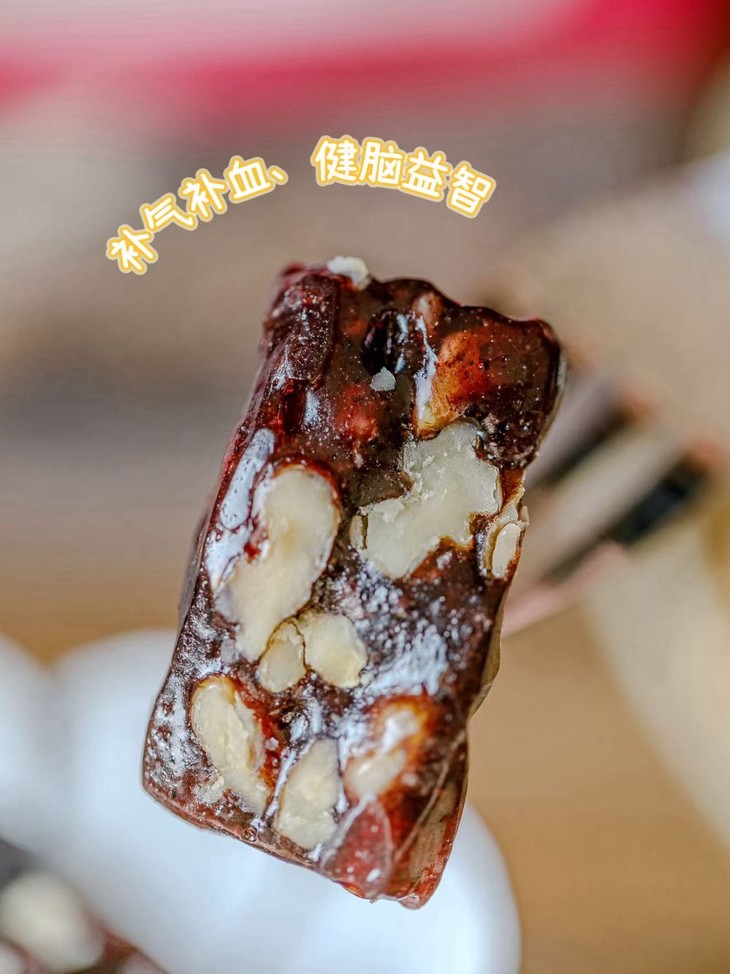 更有趣儿的是,【血糯米核桃糕】还真不甜。轻轻咬下,外层微韧内里软糯就像在吃天然的水果软糖却完全没有人工添加的负担