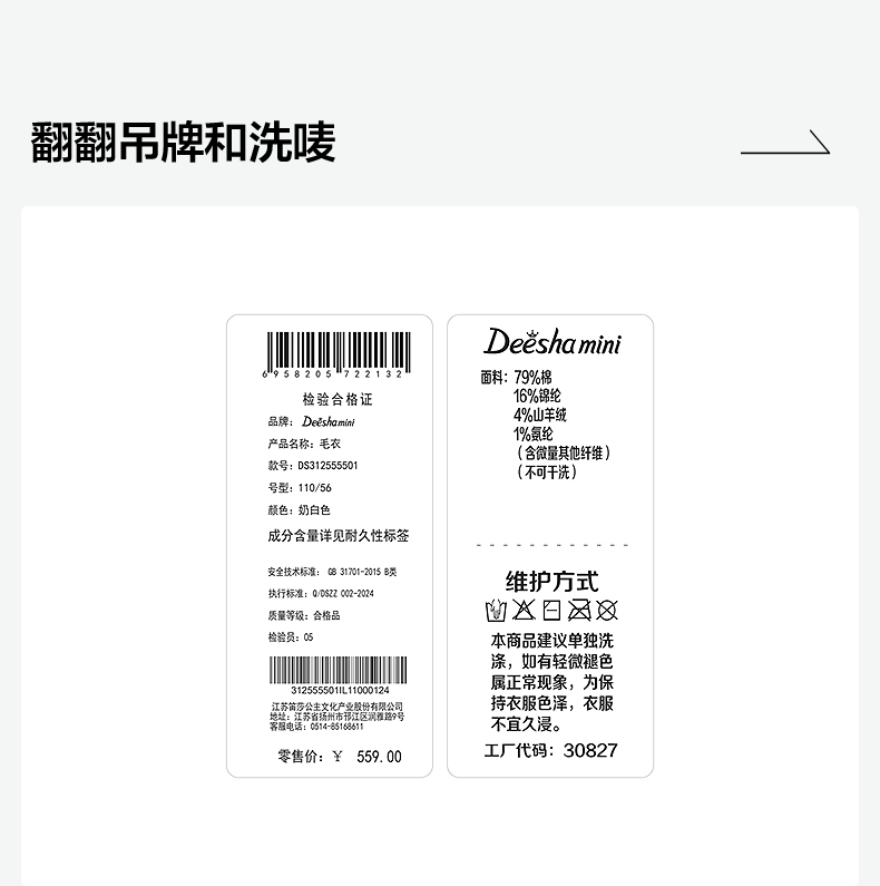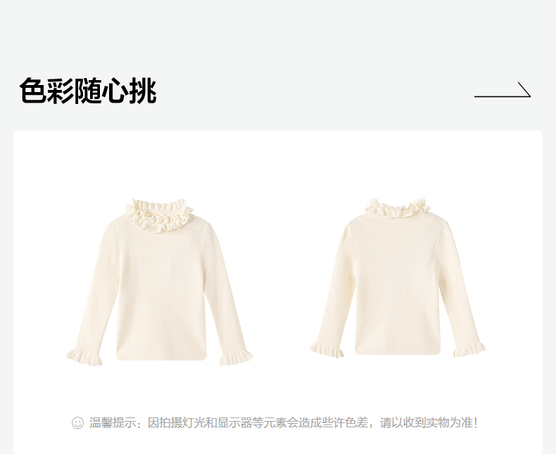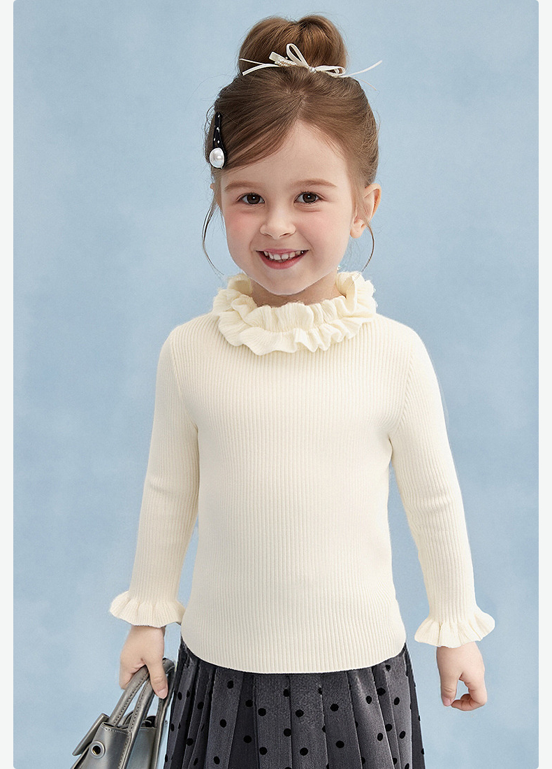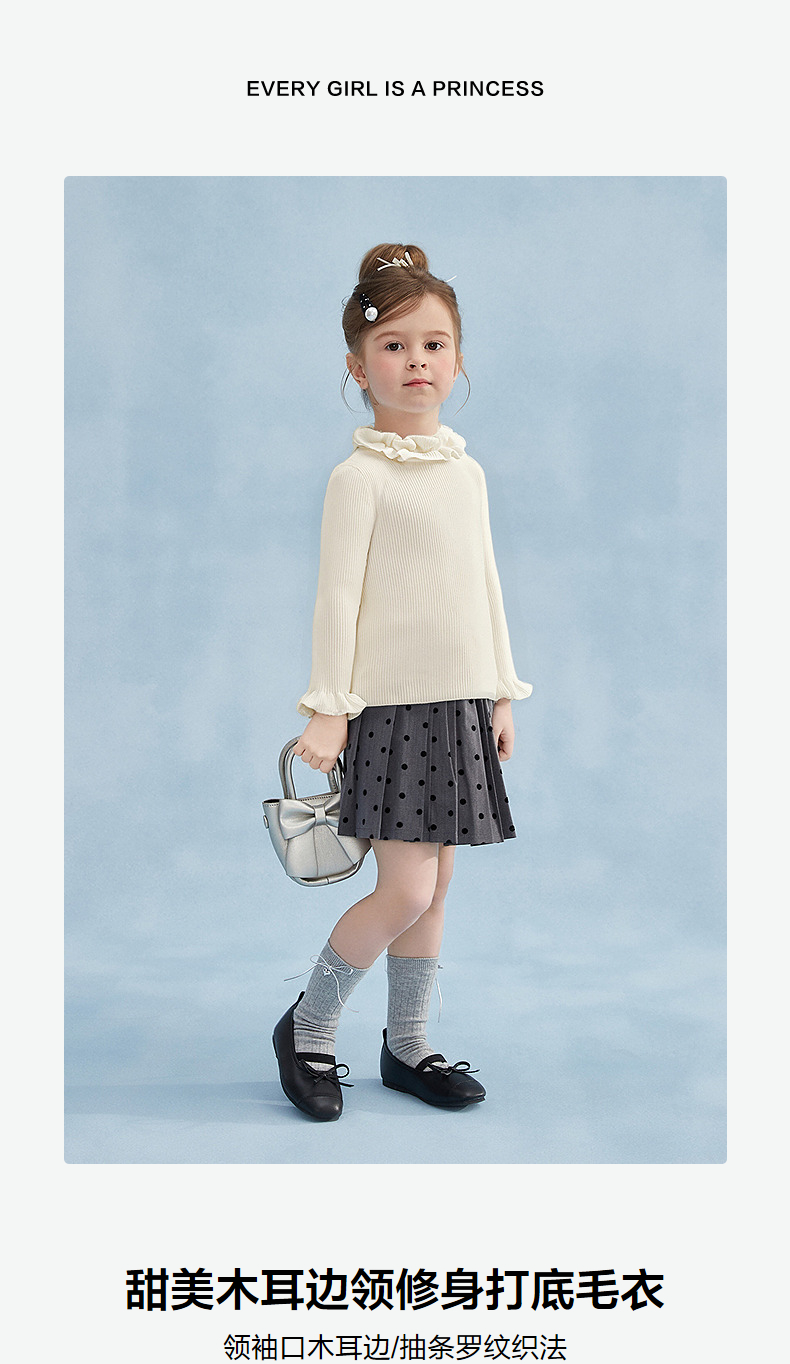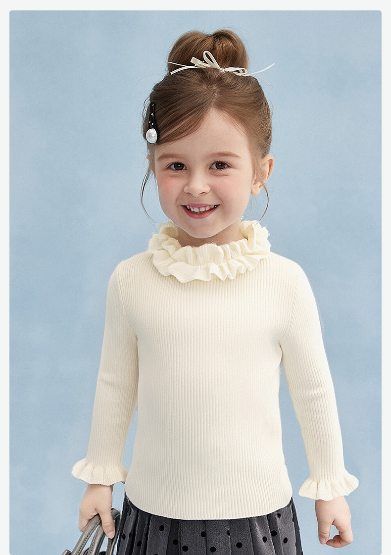 笛莎Deesha 童装女童毛衫2025冬新款女童甜美木耳边领修身打底毛衣