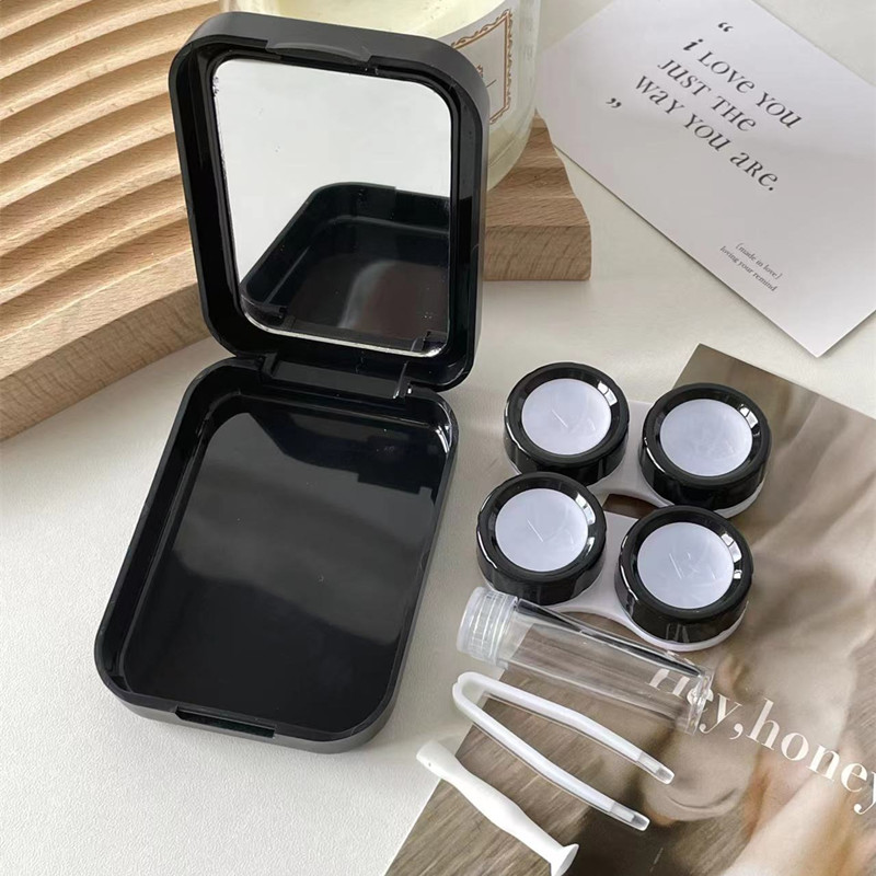 伴侣盒套装组成:双联盒、镊子 ,配戴棒、镜子、瓶子。