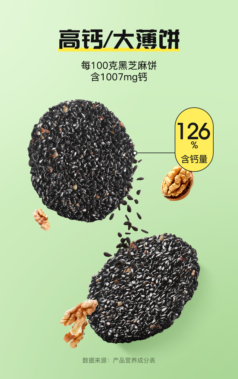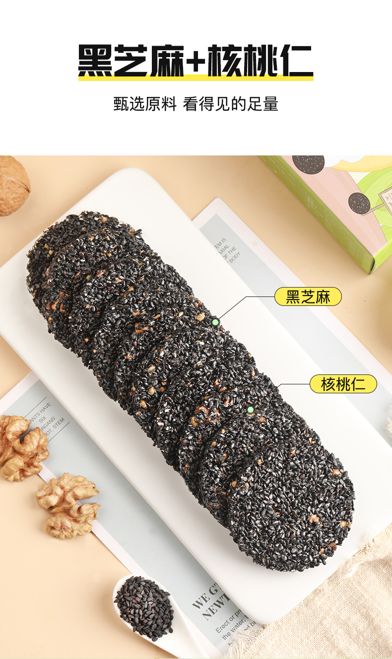 添加了核桃黑小麦的高钙黑芝麻饼 126g*3盒