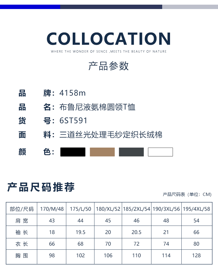 4158m山系行政布鲁尼液氨棉圆领T恤男