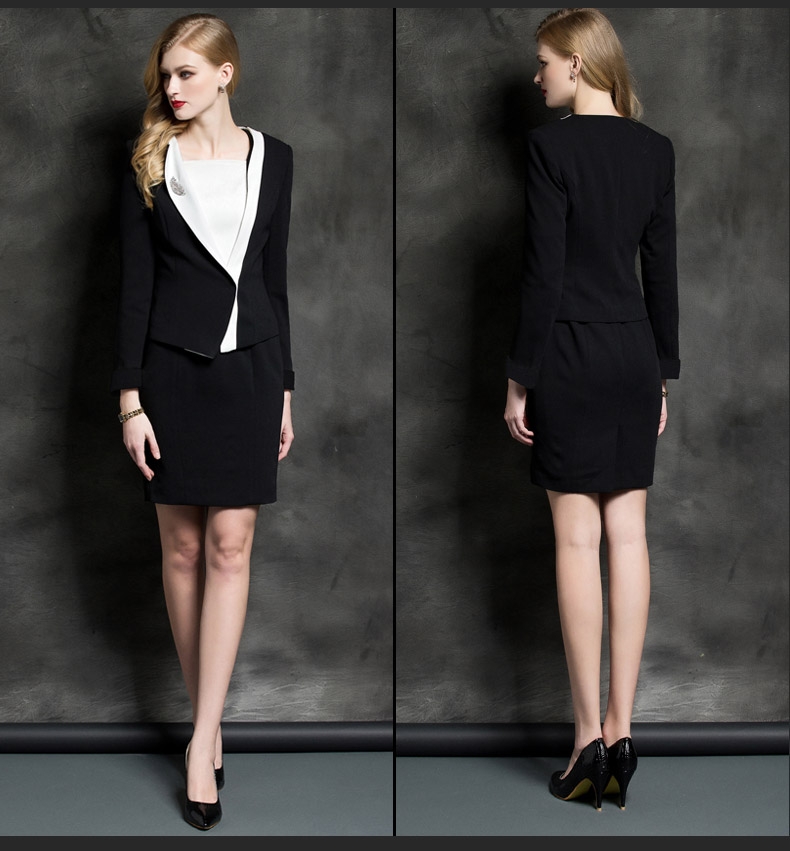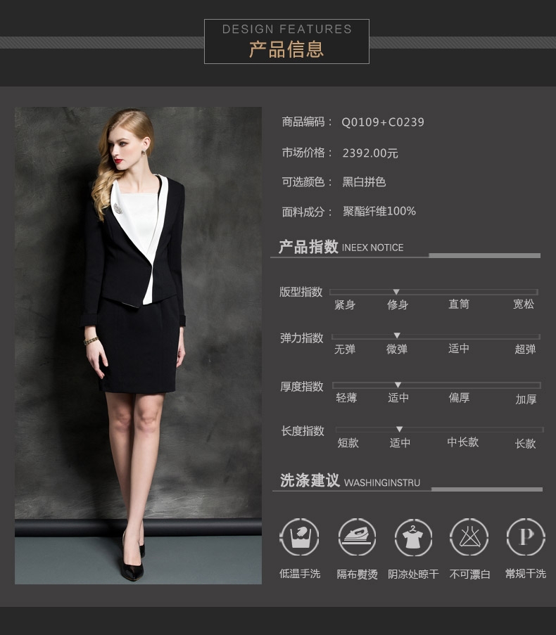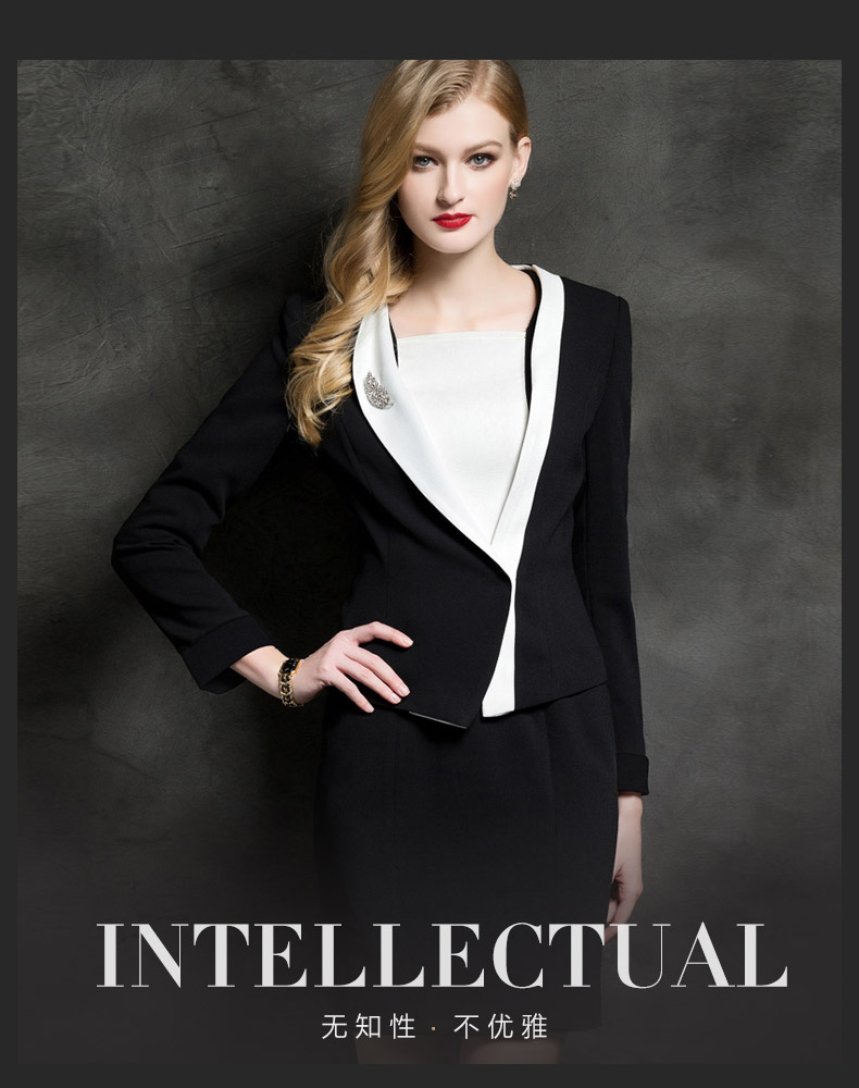 IWY/时尚高端黑白拼色西装连衣裙两件套C0239+Q0109