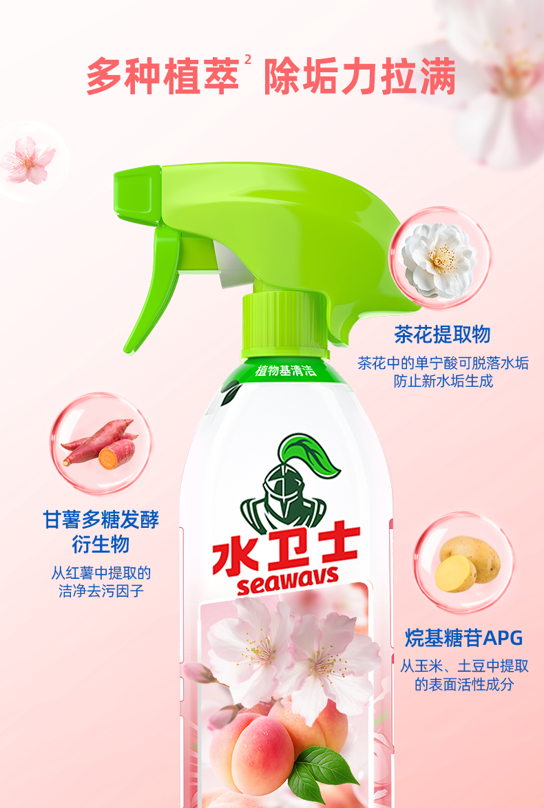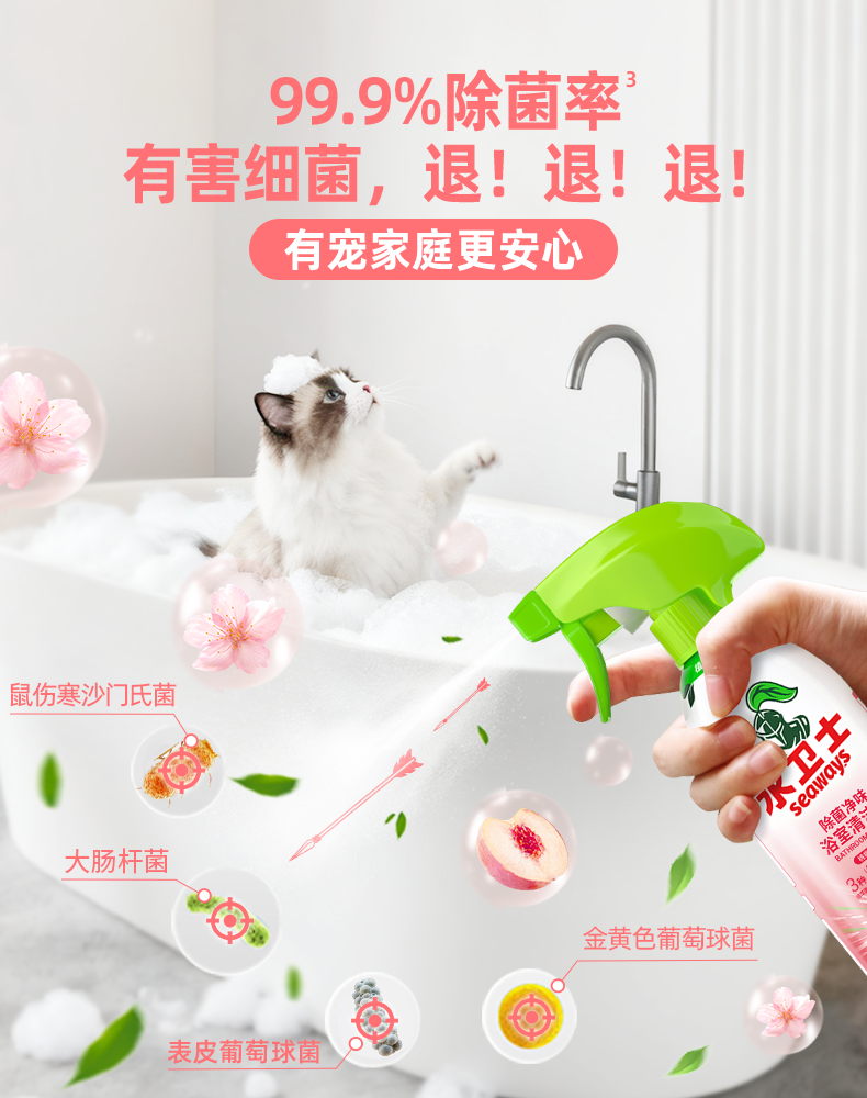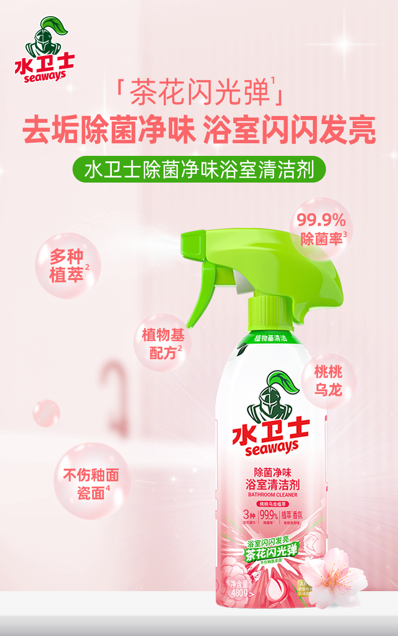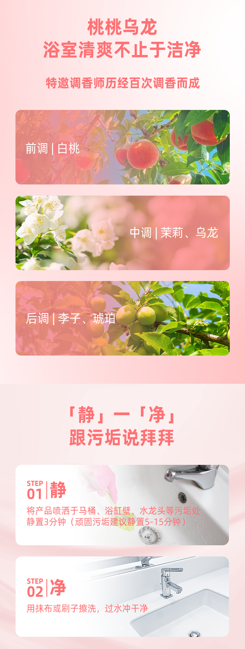 【供货特惠】『浴室清洁剂』桃桃乌龙植萃香氛 卫生间/玻璃/瓷砖/水龙头/洗漱台一喷一擦强力除水垢皂垢