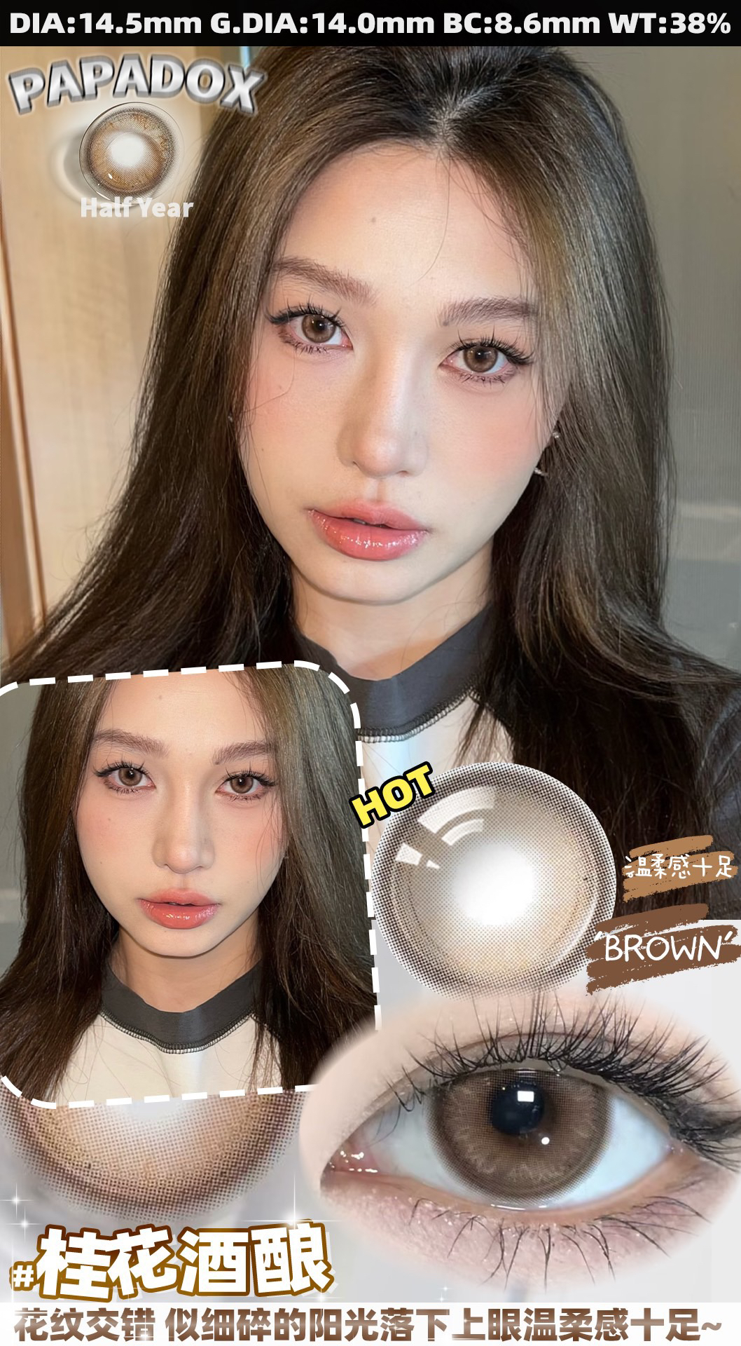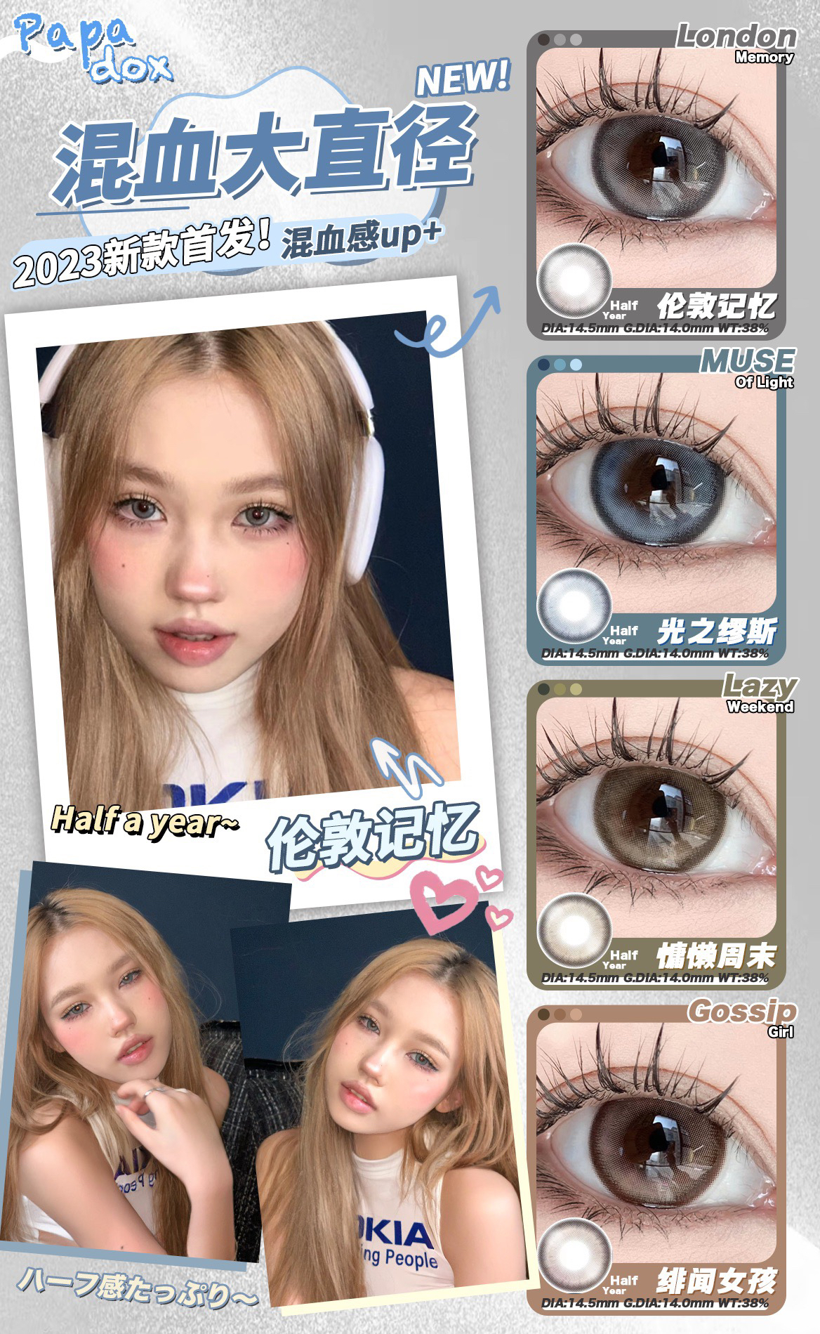 PAPADOX/blush半年抛 赫拉小姐/慵懒周末棕/伦敦记忆灰蓝半年抛美瞳