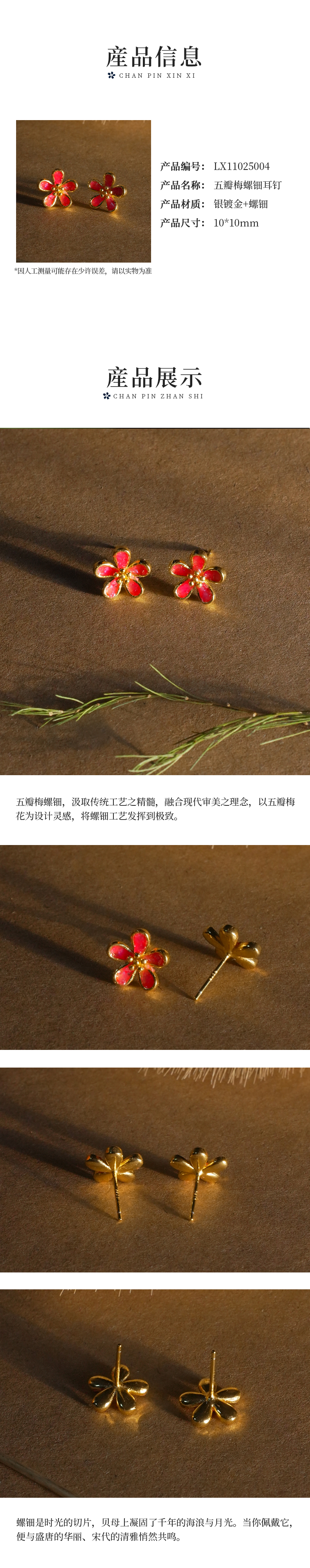 【林栖好物】LX11025004五瓣梅螺钿耳钉(预售7天发货)