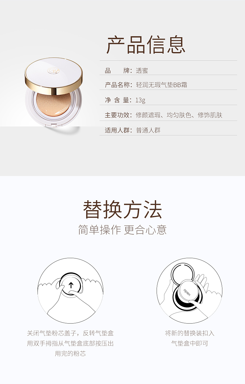 【蜜家特惠】透蜜 轻润无瑕气垫BB霜(新旧款随机发货)