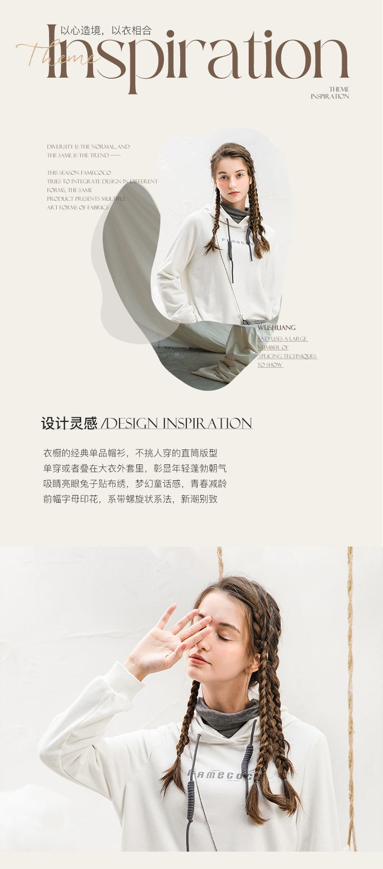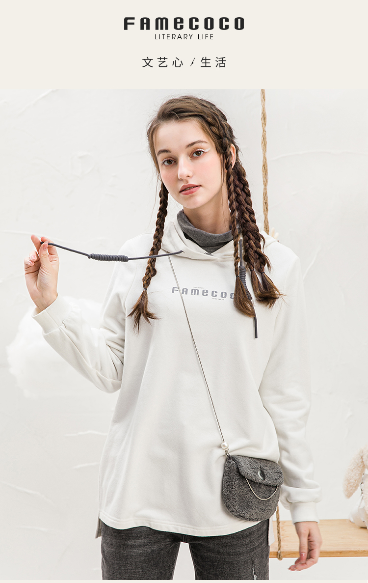 famecoco范可儿连帽卫衣款潮ins印花宽松上衣F218BL005