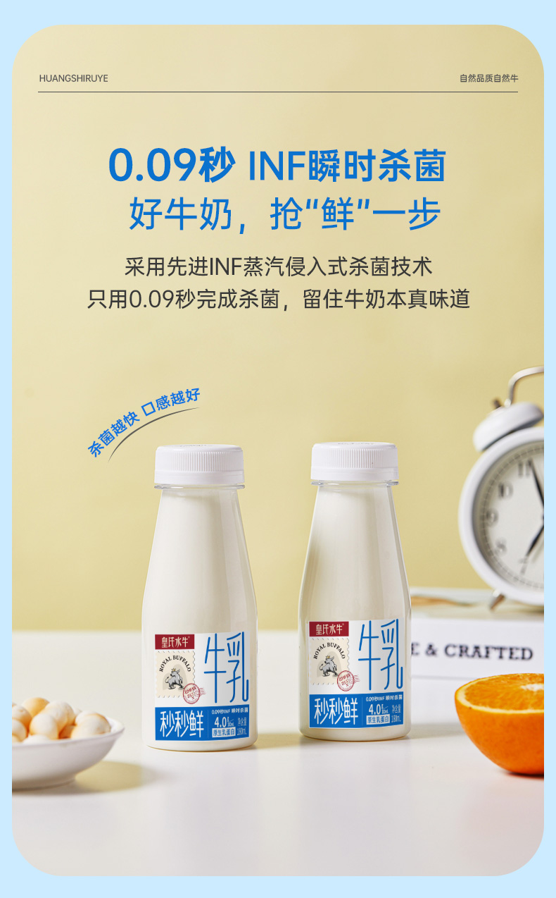 【低温短保】皇氏水牛0.09秒低温水牛鲜奶 180ml*6*2组 到手共12瓶