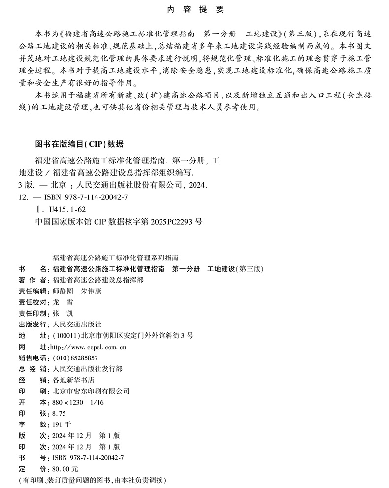 书名:福建省高速公路施工标准化管理指南 第一分册 工地建设 (第三版)