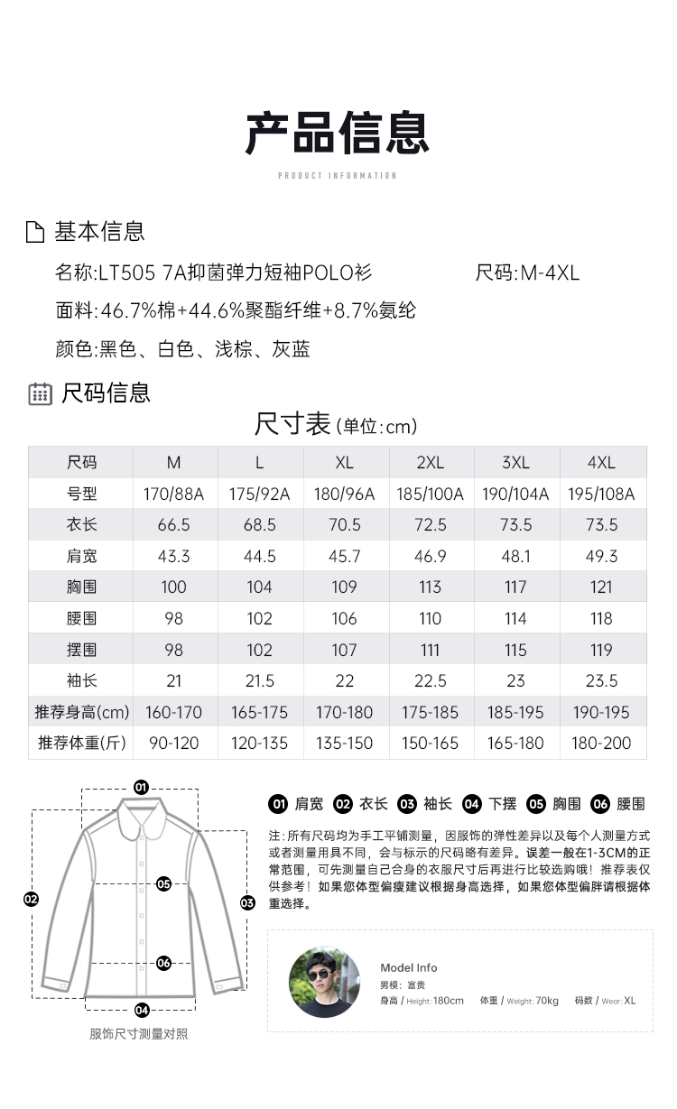 【7A抑菌弹力短袖POLO衫】通勤翻领休闲T恤透气凉感半袖上衣LT505