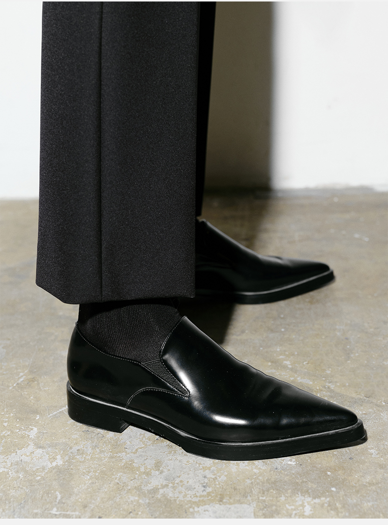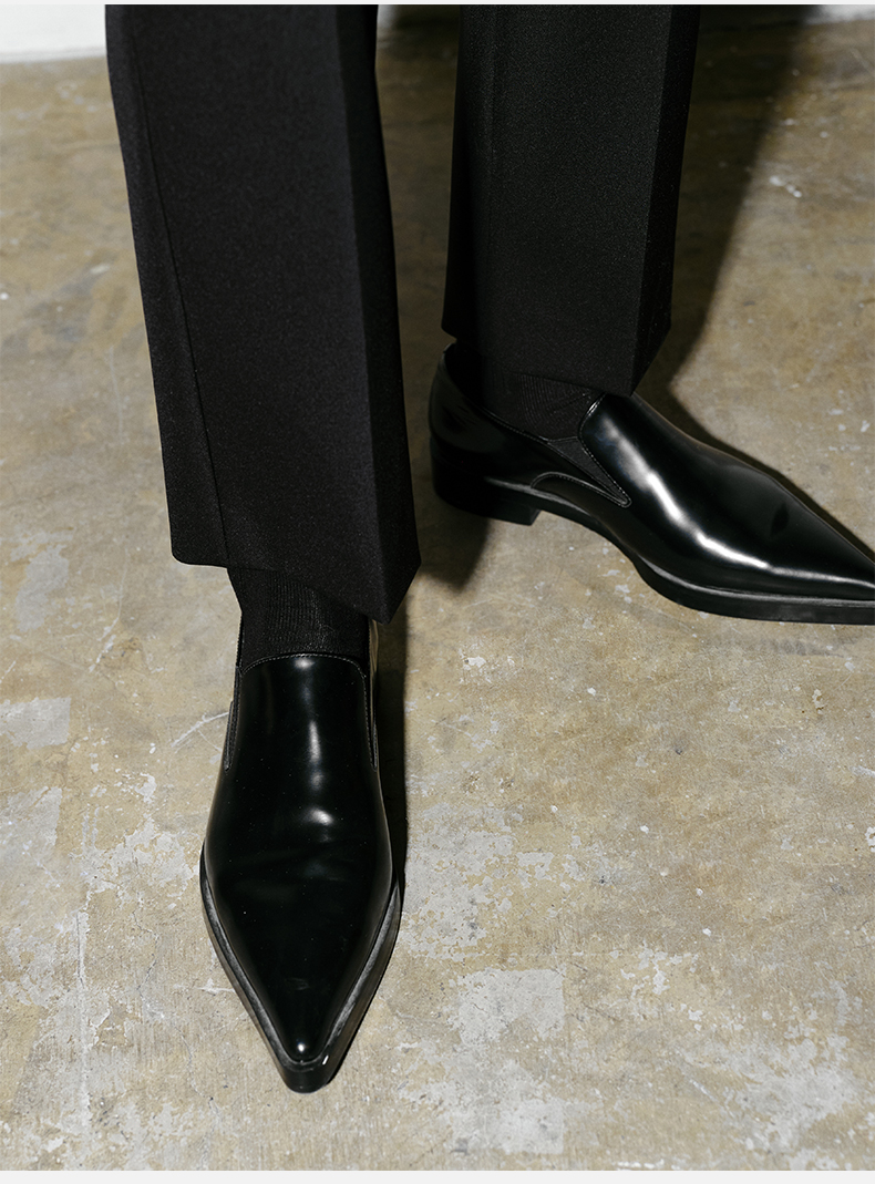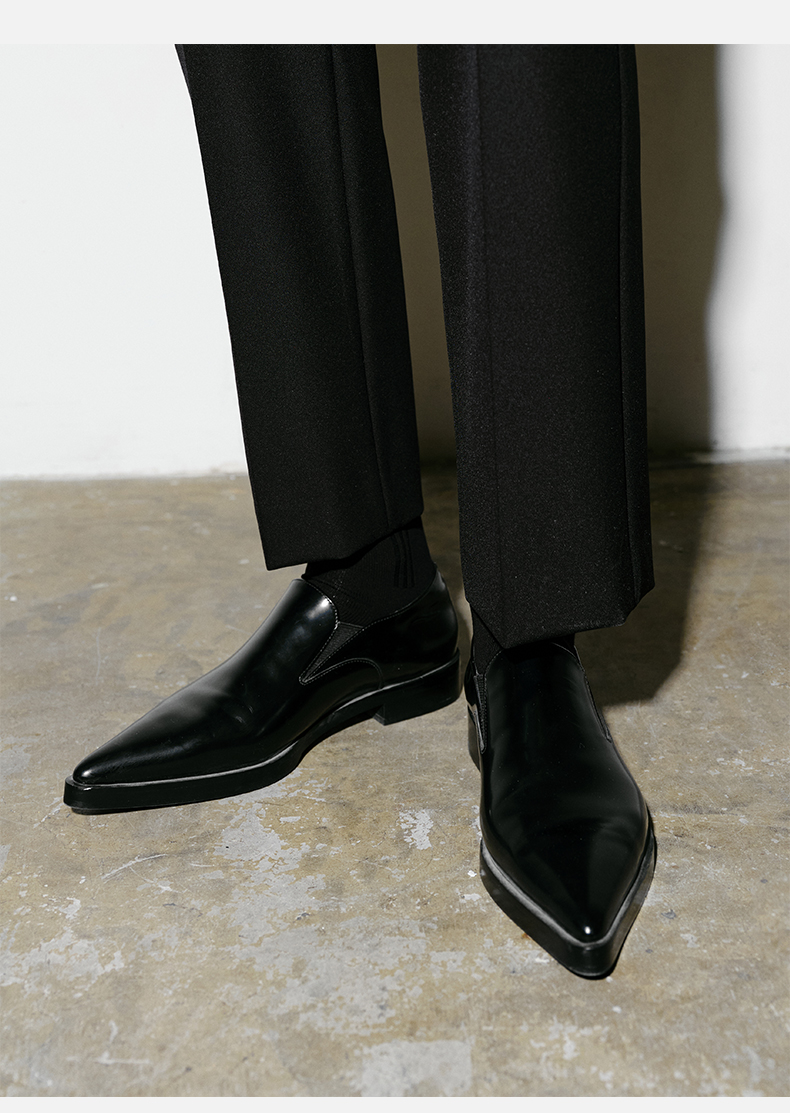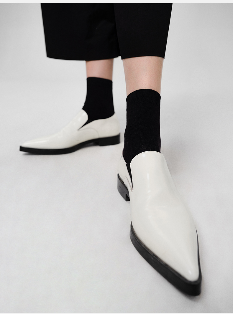 HIDEMI 尖头切尔西一脚蹬皮鞋