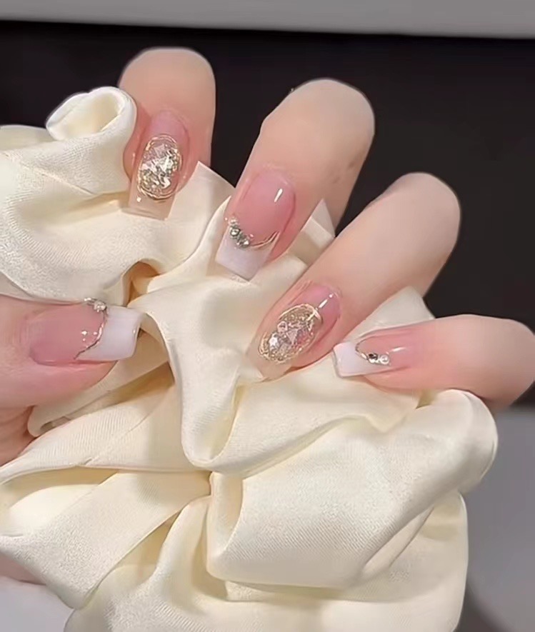 ④甲片都是日本进口最新无感甲片 不开裂 无痕无感透气 不闷甲 并且不用工业胶水贴甲片 使用最新技术内外建构相结合让延长指甲牢固四十天不脱落 还能二次利用