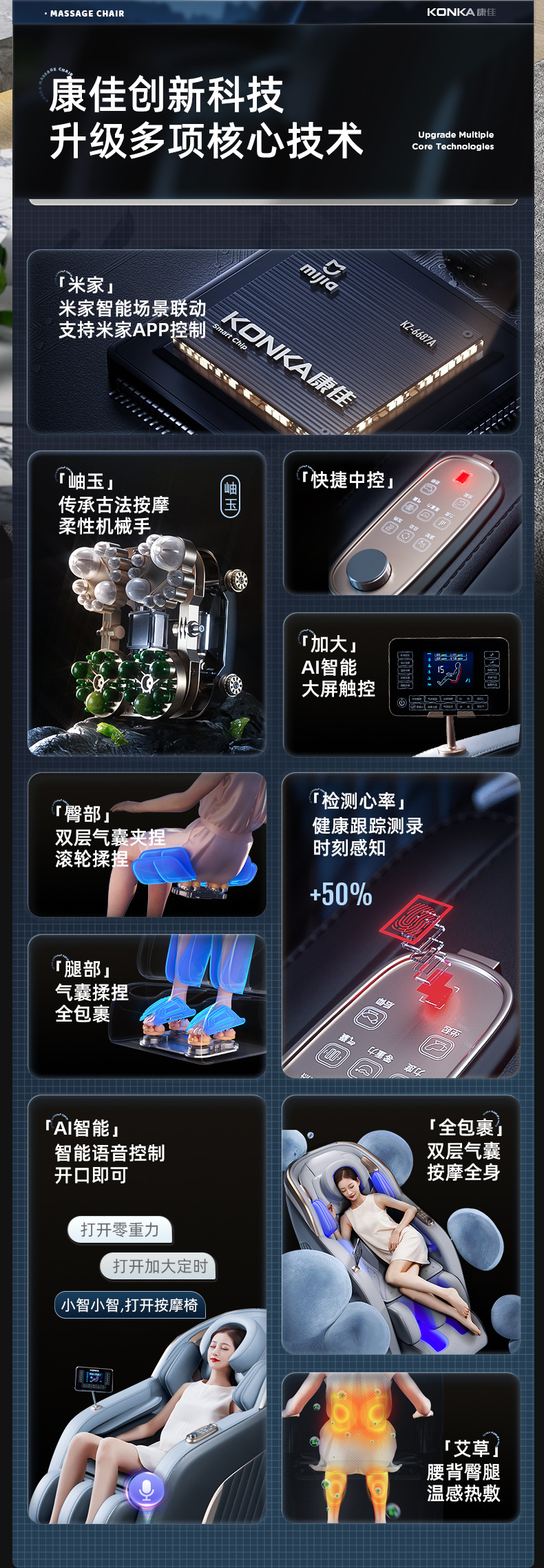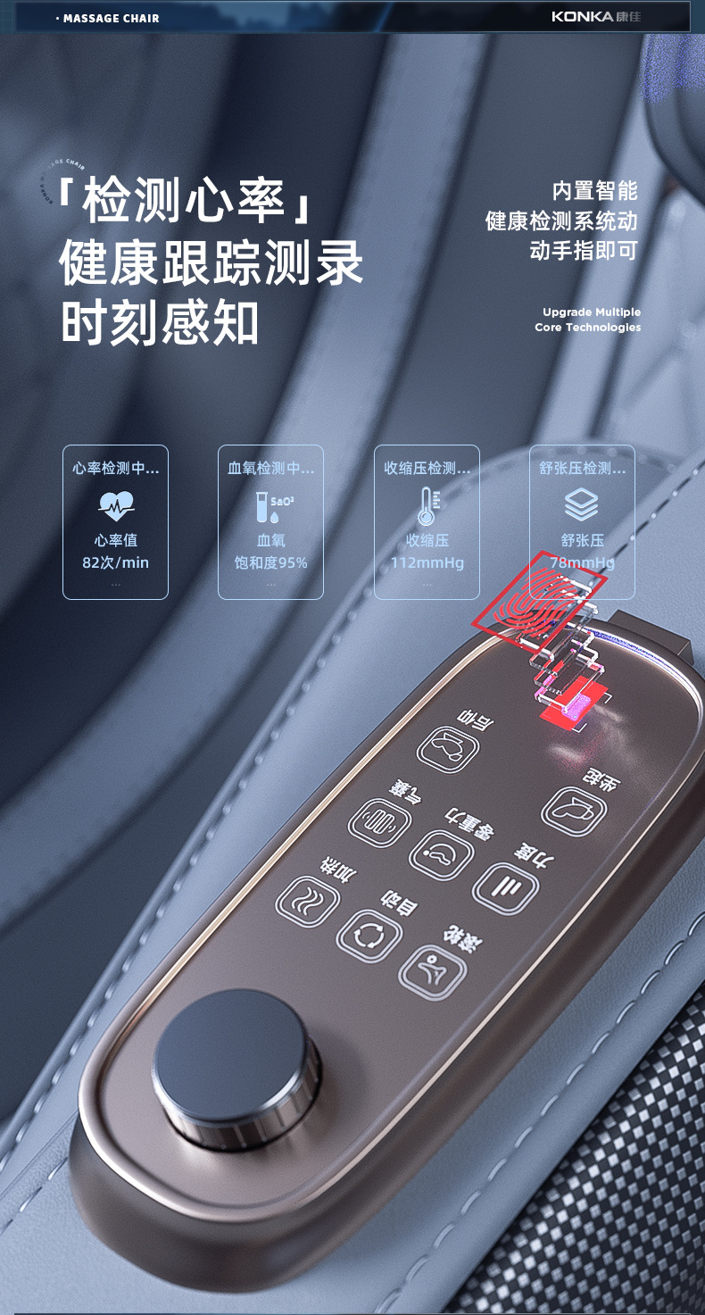 康佳(KONKA)【健康监测】 按摩椅豪华家用全身太空舱零重力全身电动按摩沙发椅男女朋友生日礼物送爸爸妈妈 顶配款+岫玉按摩+健康监测+语音控制+腰腿热敷