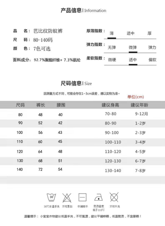 儿童轻薄透气防蚊裤2条❗夏季孩子zui需要的单品!大弹力橡皮筋松紧裤腰,弹性适宜、贴身不勒、久穿不松,回弹不易变形❗❗