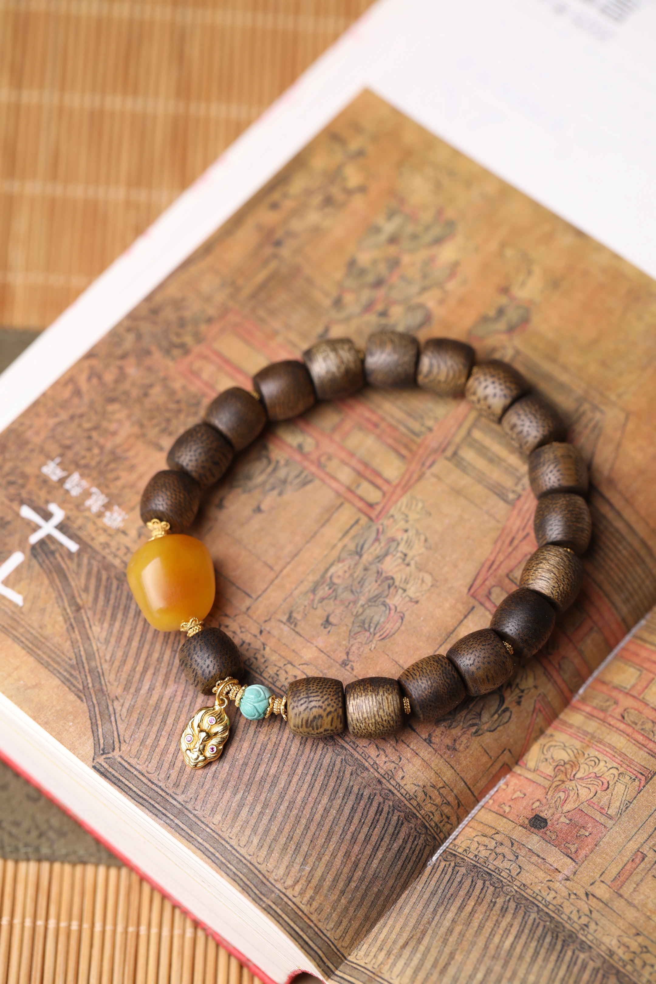【孤品】10m沉香蜜蜡手串