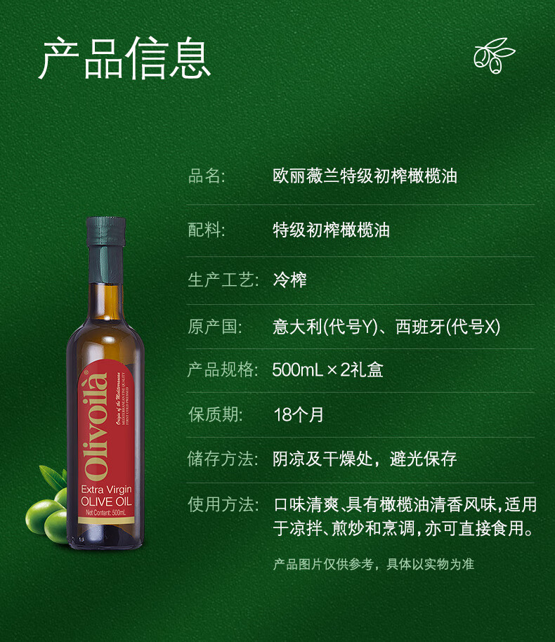 欧丽薇兰特级初榨橄榄油红色礼盒500ml*2瓶