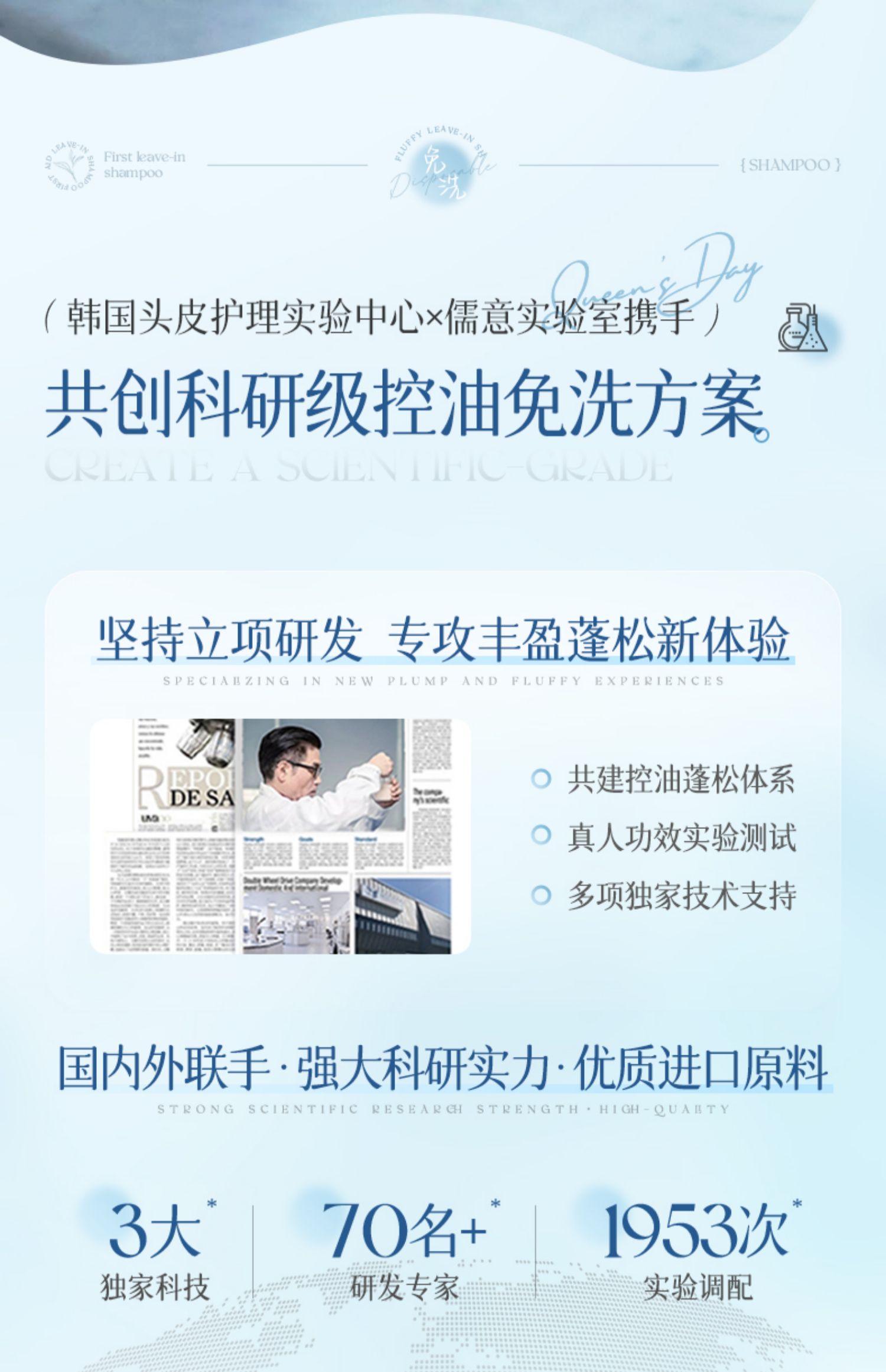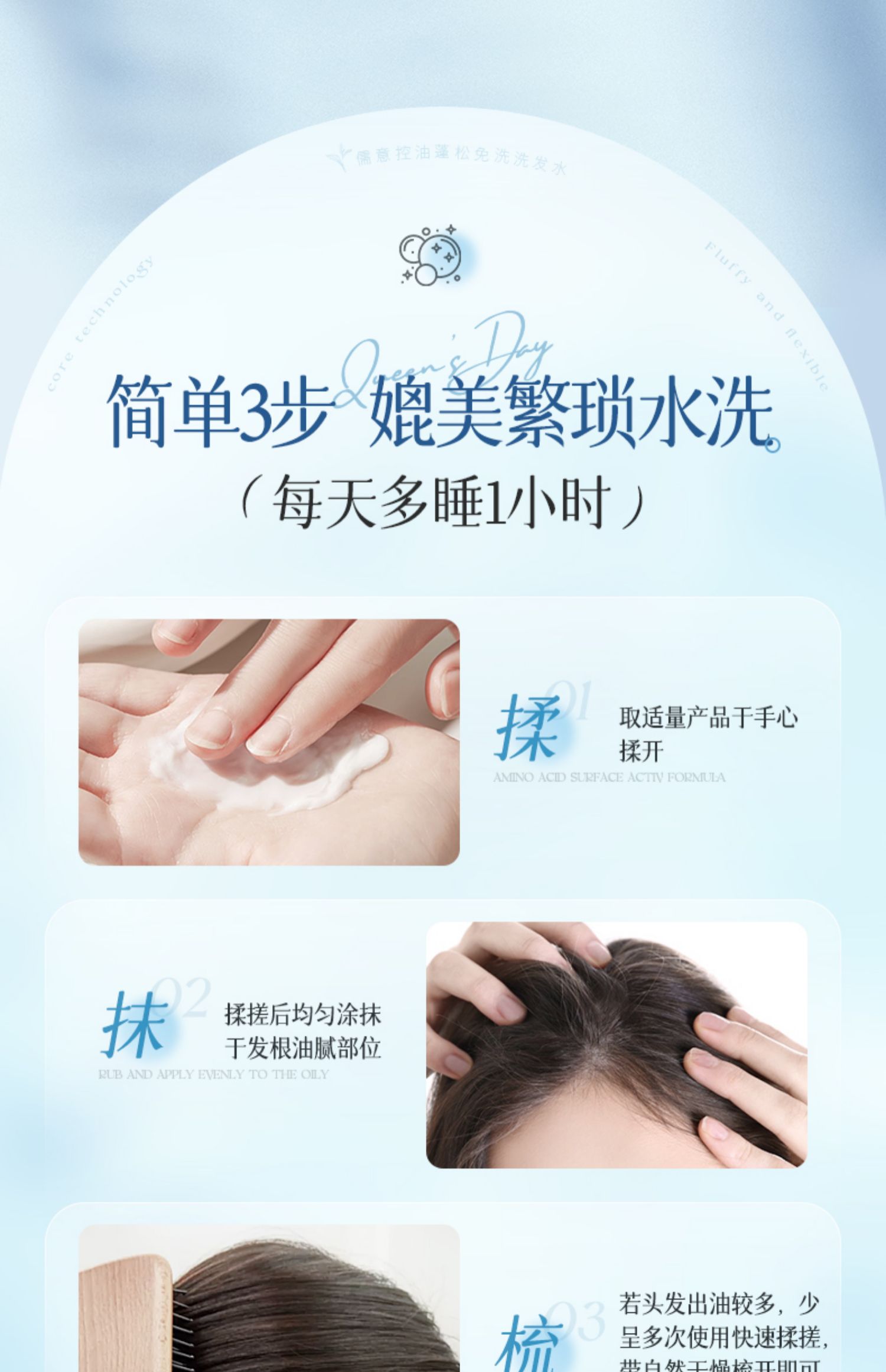 儒意免洗洗发水控油蓬松 正品保湿清洁吸油高颅顶便携懒人神器