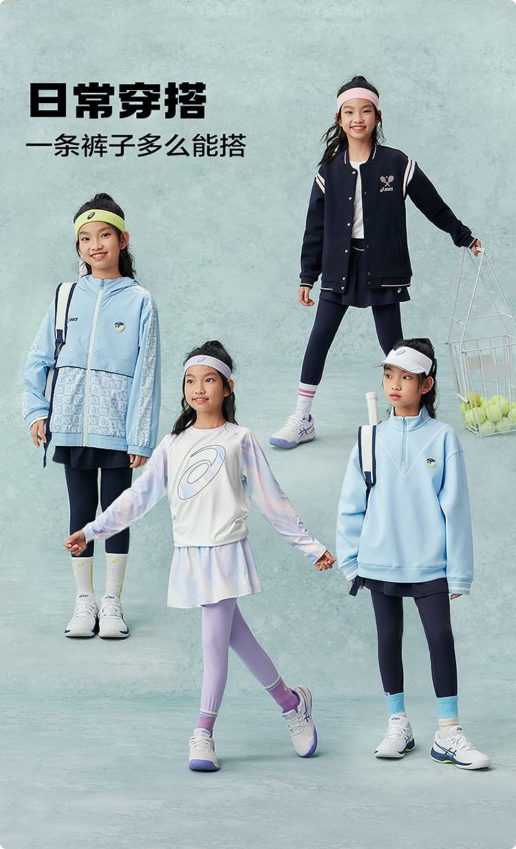 【商场同款】Asics/亚瑟士童装2025年春季新款儿童运动打底裤磨毛