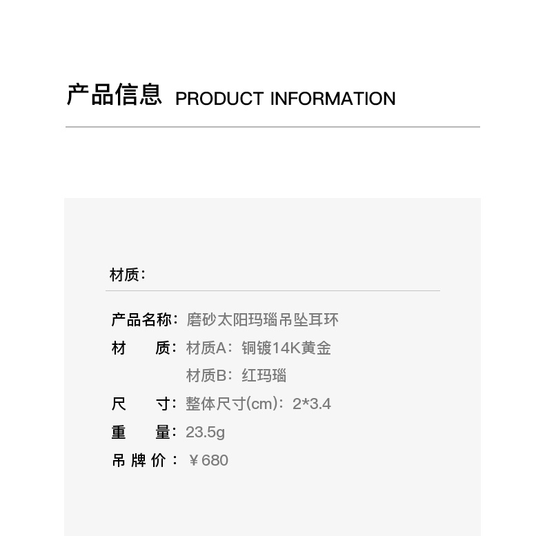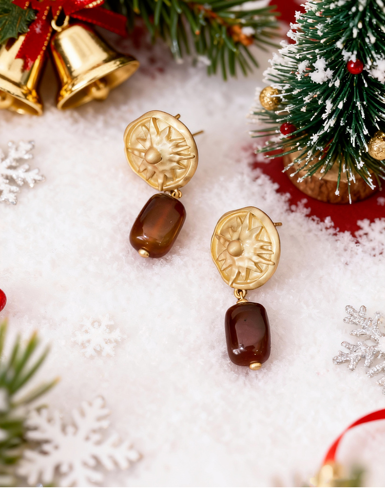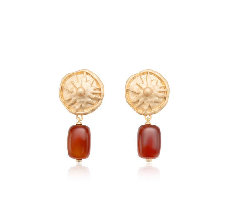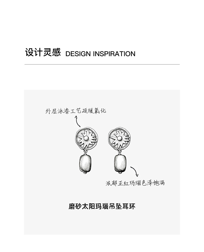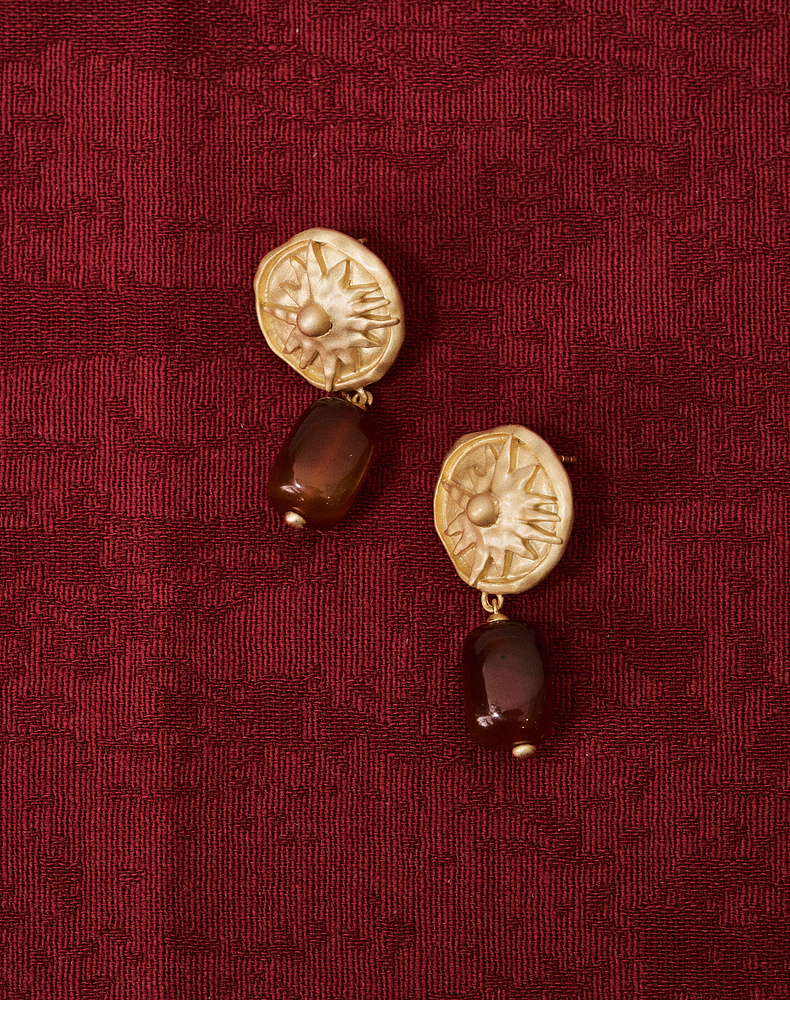 lost in echo2026春夏新款磨砂质感太阳红玛瑙吊坠925纯银耳饰