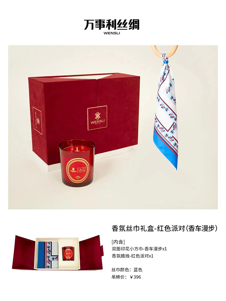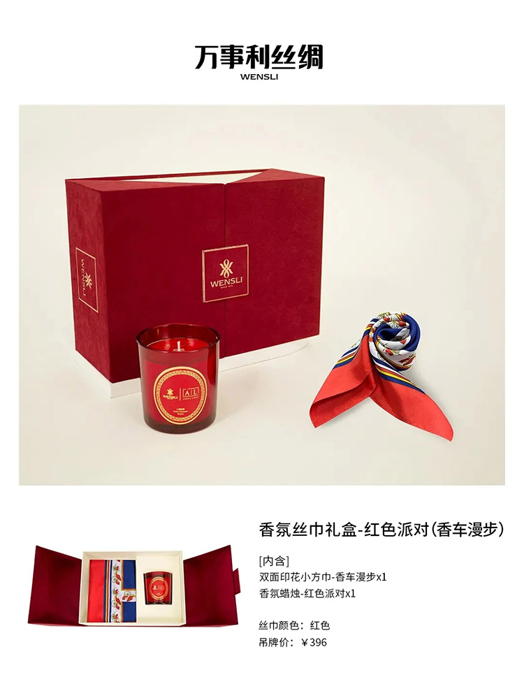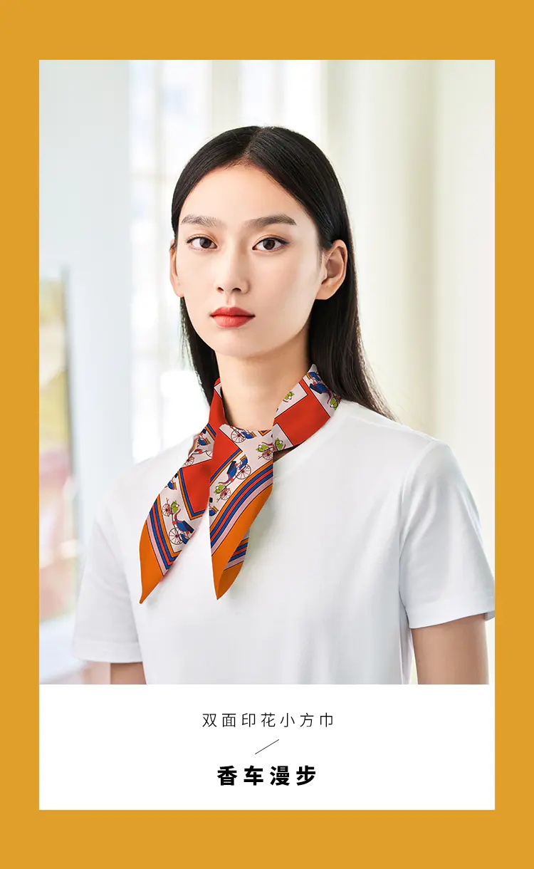 万事利-红色派对 双面印花小方巾53*53cm/真丝眼罩 100%桑蚕丝