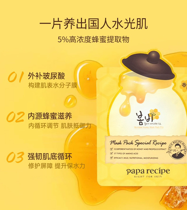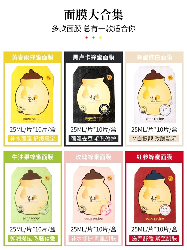 韩国 PaPa’Recipe春雨 蜂蜜面膜 全系列 6片/10片