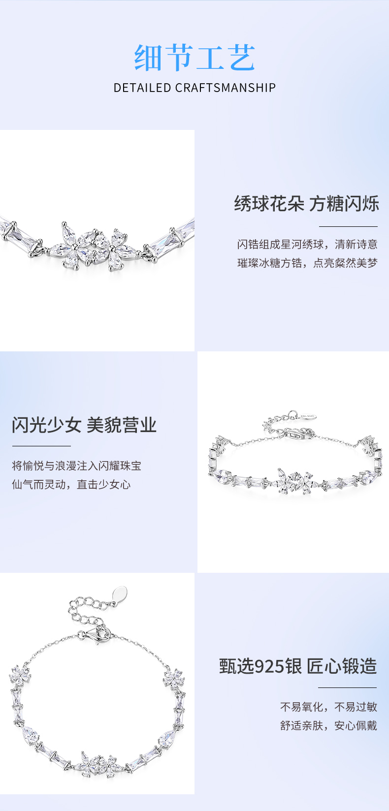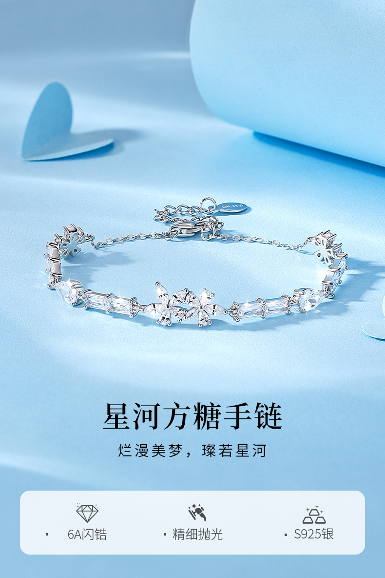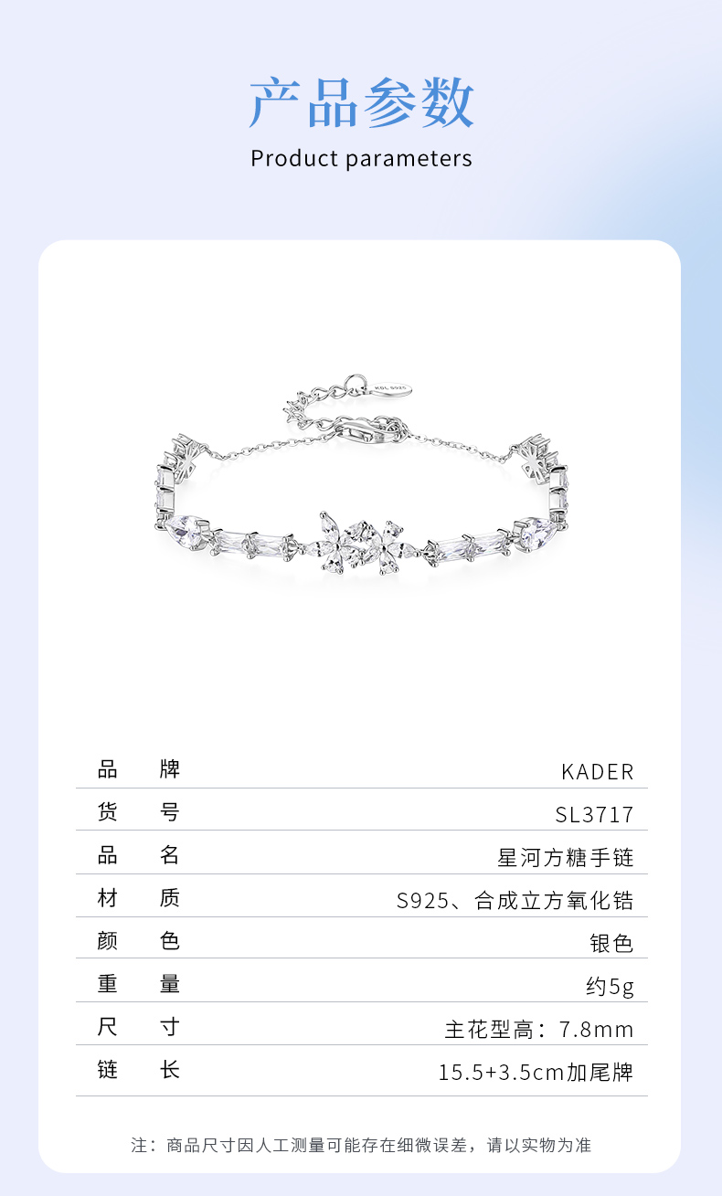 卡蒂罗/KADER 星河方糖纯白茉莉项链 春夏经典时尚百搭可调节纯银首饰 梦幻紫藤花闪耀银河满镶闪锆可调节配饰