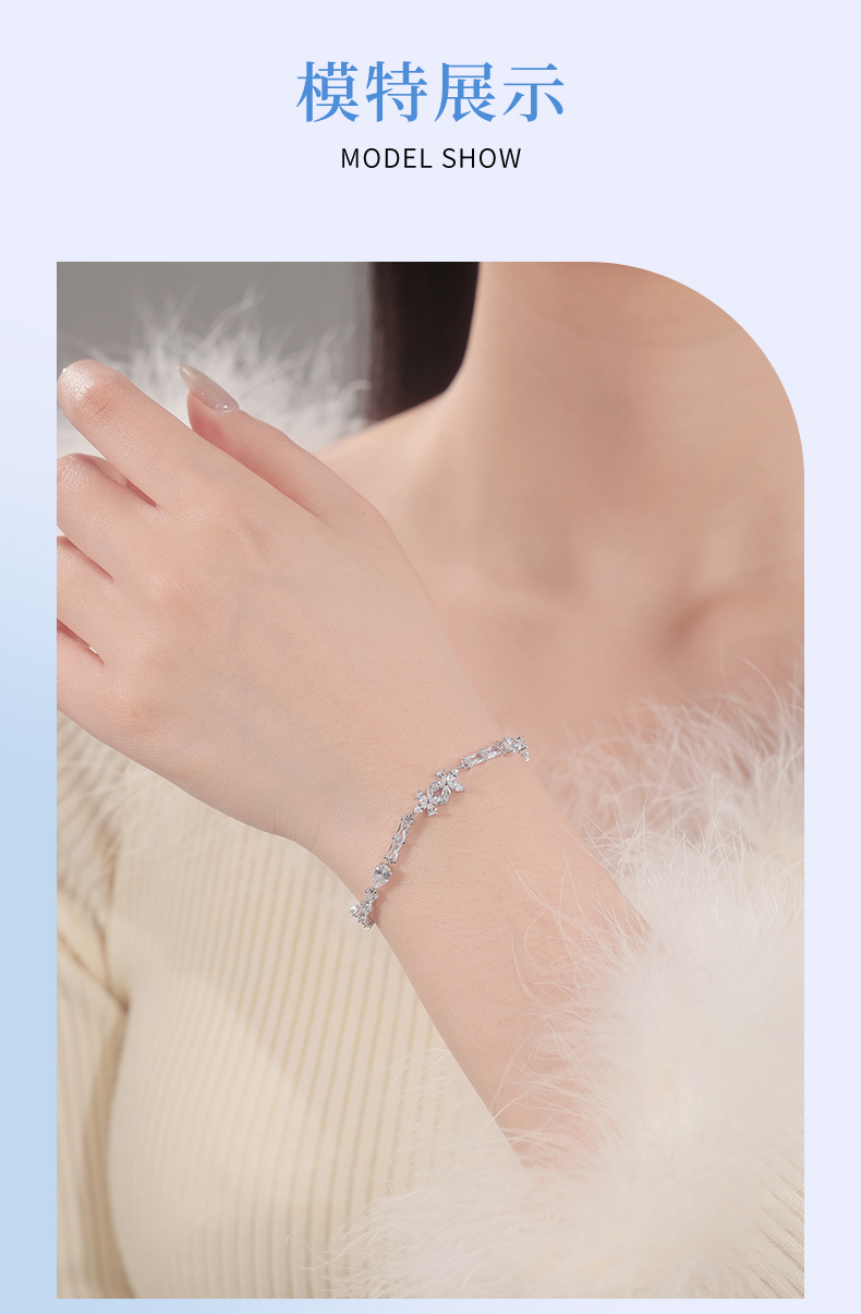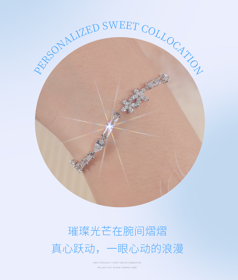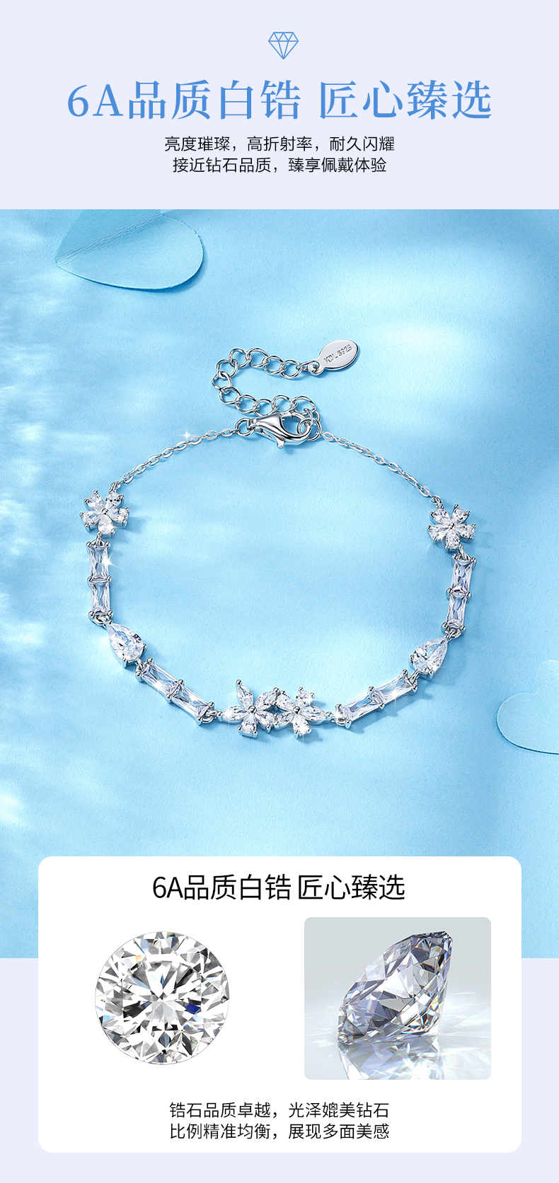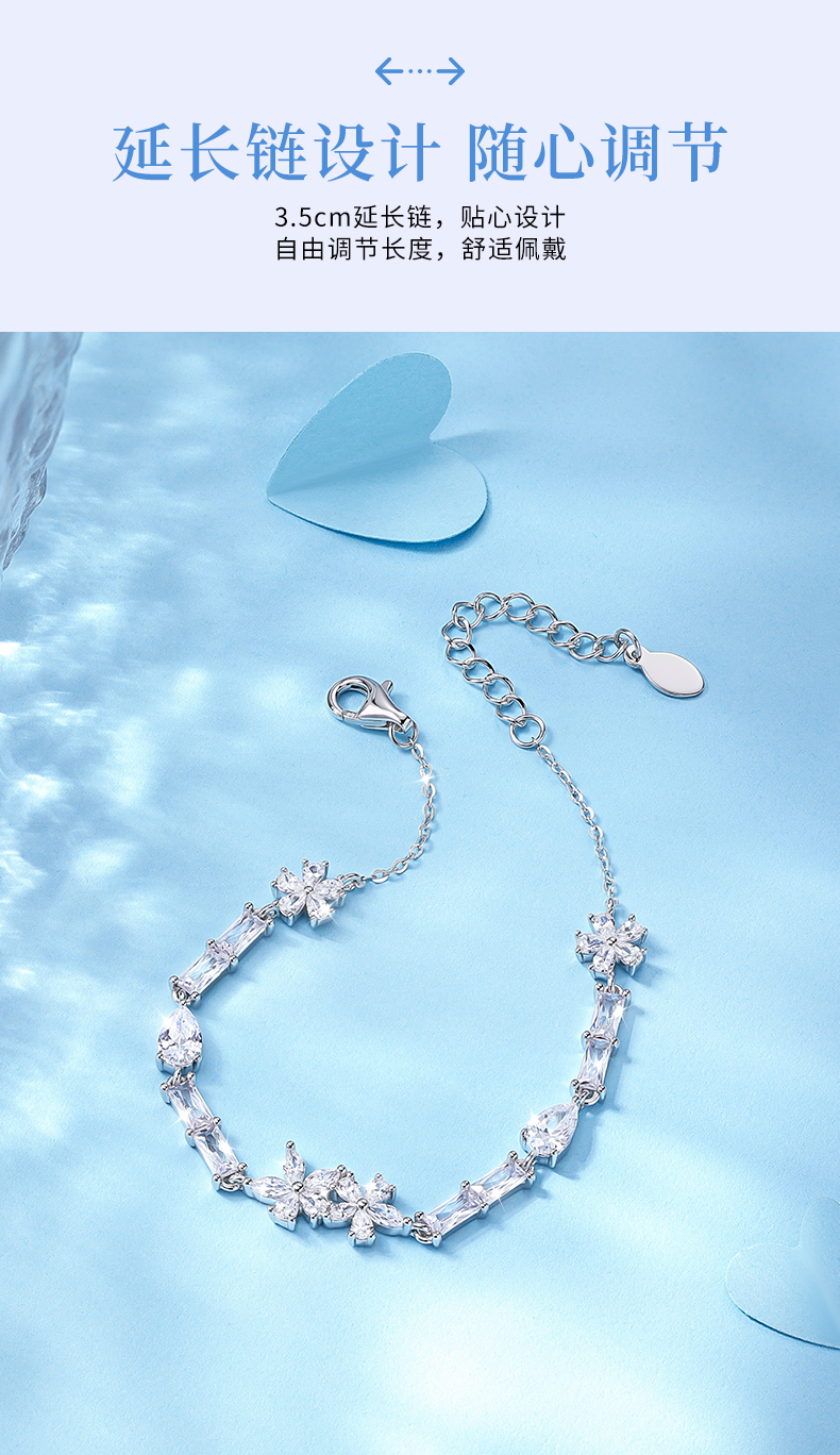 卡蒂罗/KADER 星河方糖纯白茉莉项链 春夏经典时尚百搭可调节纯银首饰 梦幻紫藤花闪耀银河满镶闪锆可调节配饰