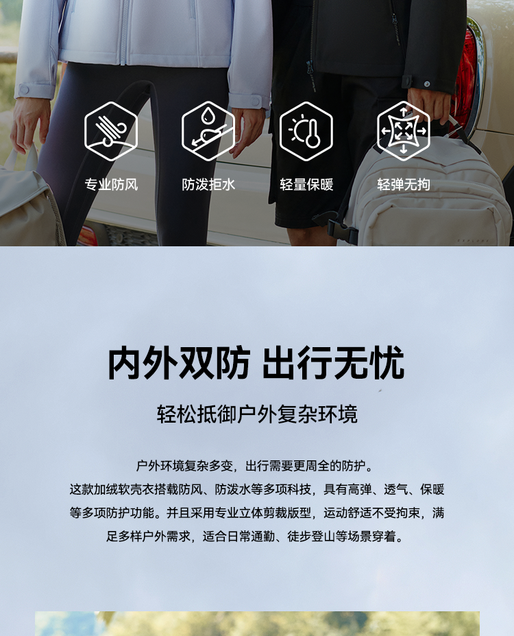 【风盾】伯希和软壳衣女户外防风徒步登山运动外套男休闲夹克上衣