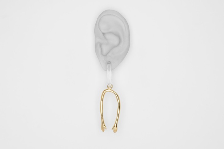 材质: 925 silver based / 18 cts gold plated pendants in abstracted shape of arms and legs.