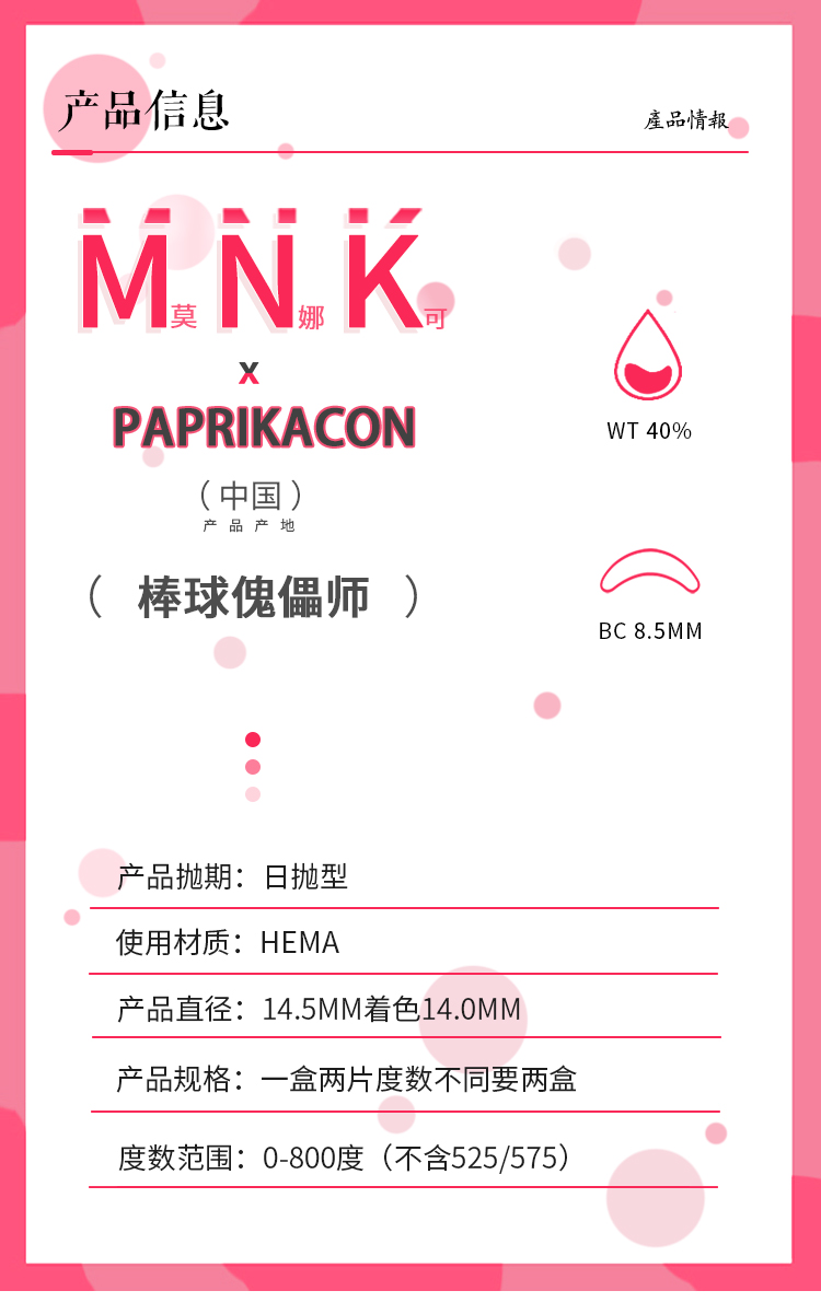 paprikacon 日抛 棒球傀儡师 直径14.5mm着色14.0mm cos (两片装)