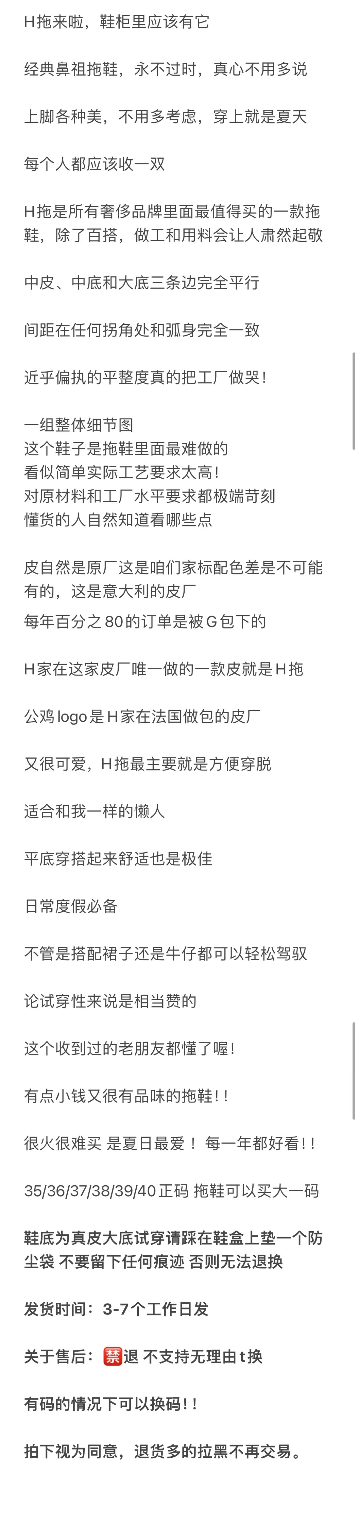 万年经典款 老渠道 H经典拖鞋 经典oran平底拖鞋