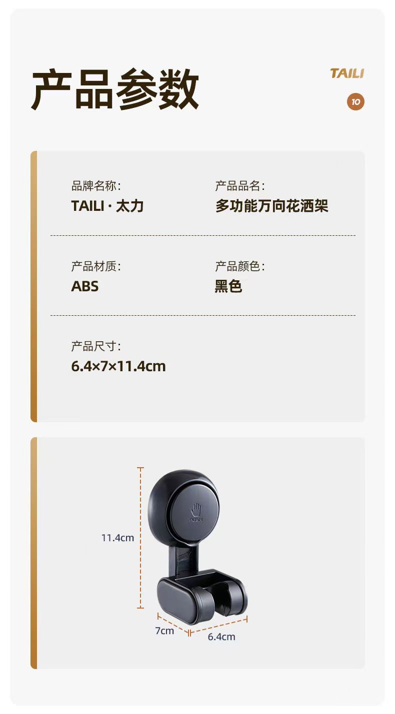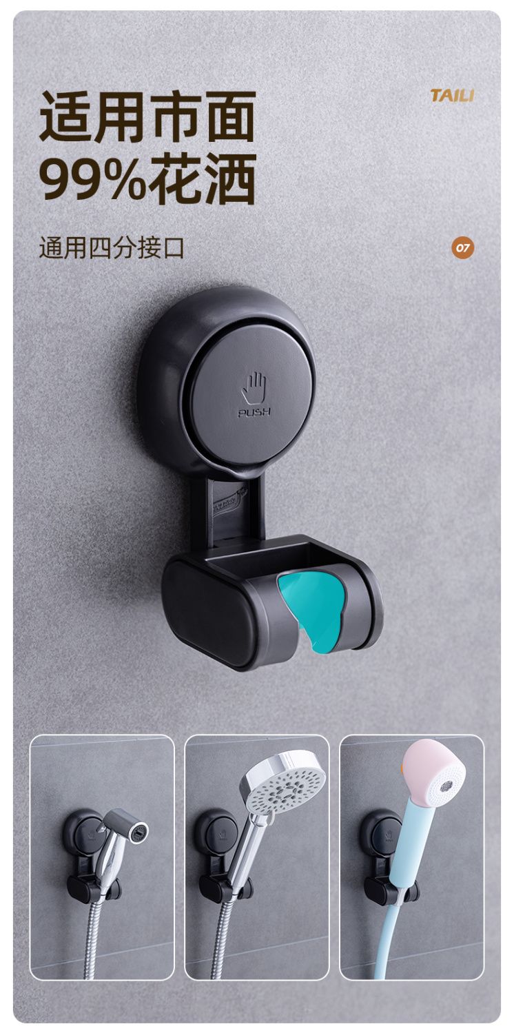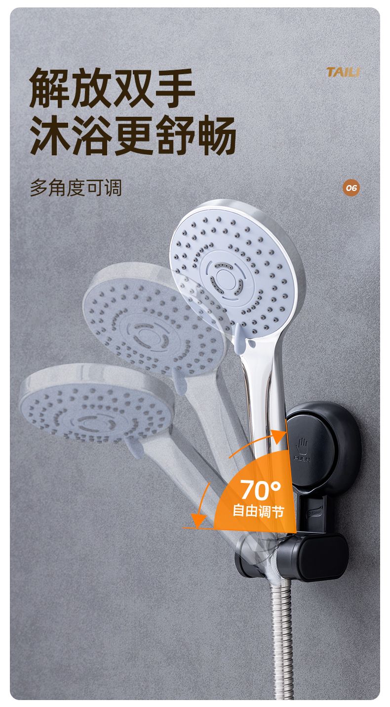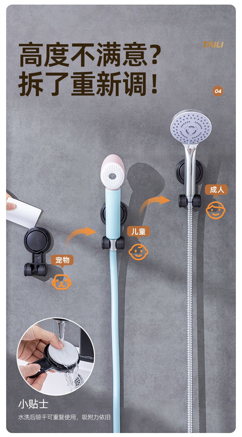 太力吸盘花洒支架 免打孔浴室顶喷花洒架儿童淋浴头喷头固定器挂钩3.240