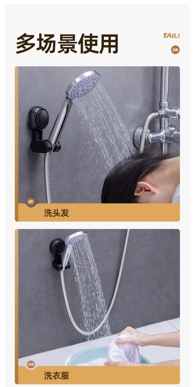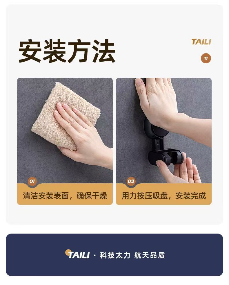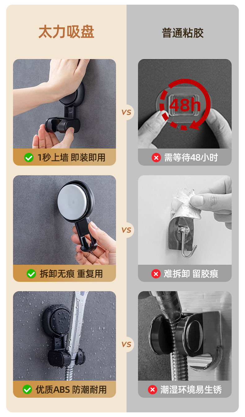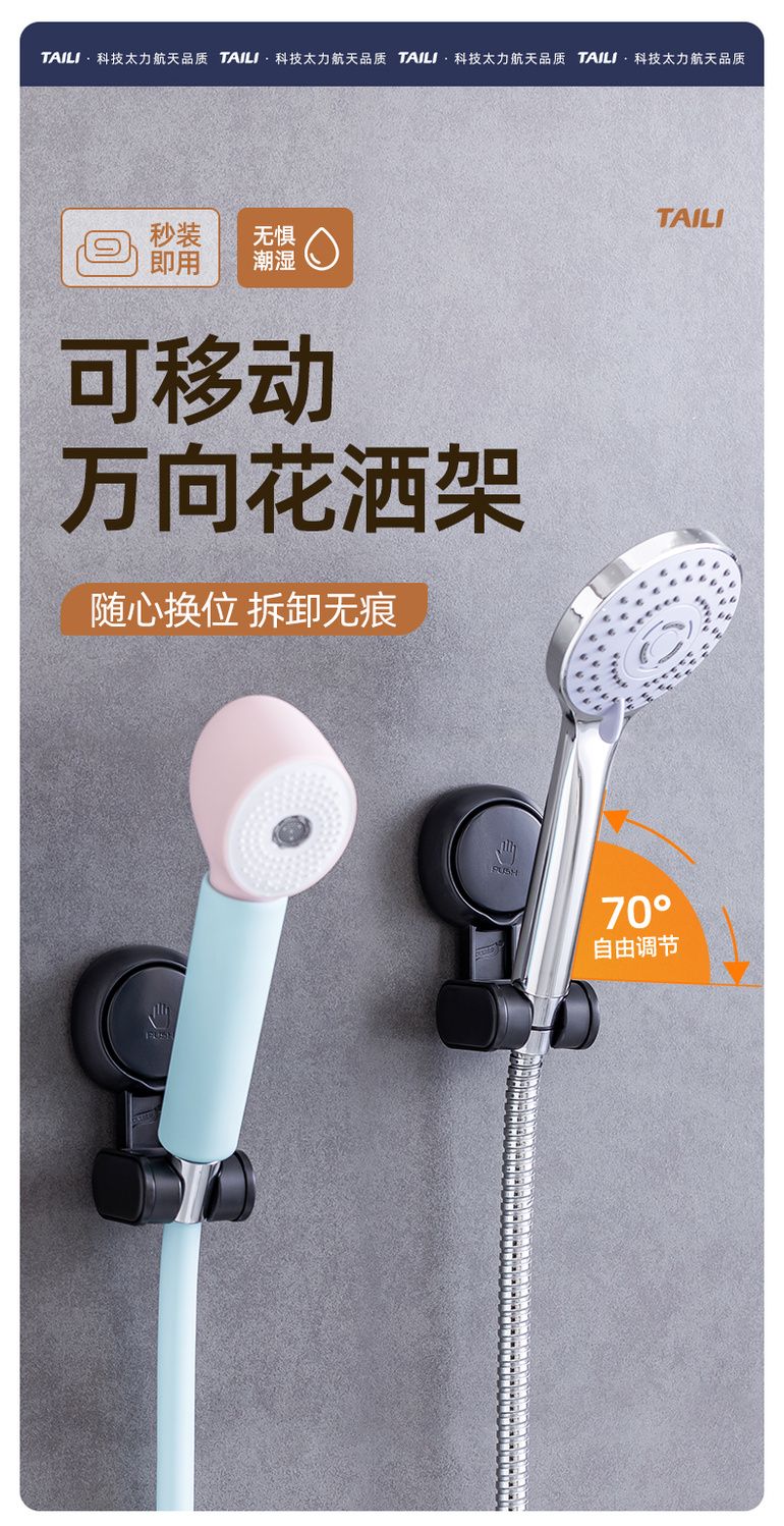 太力吸盘花洒支架 免打孔浴室顶喷花洒架儿童淋浴头喷头固定器挂钩3.240