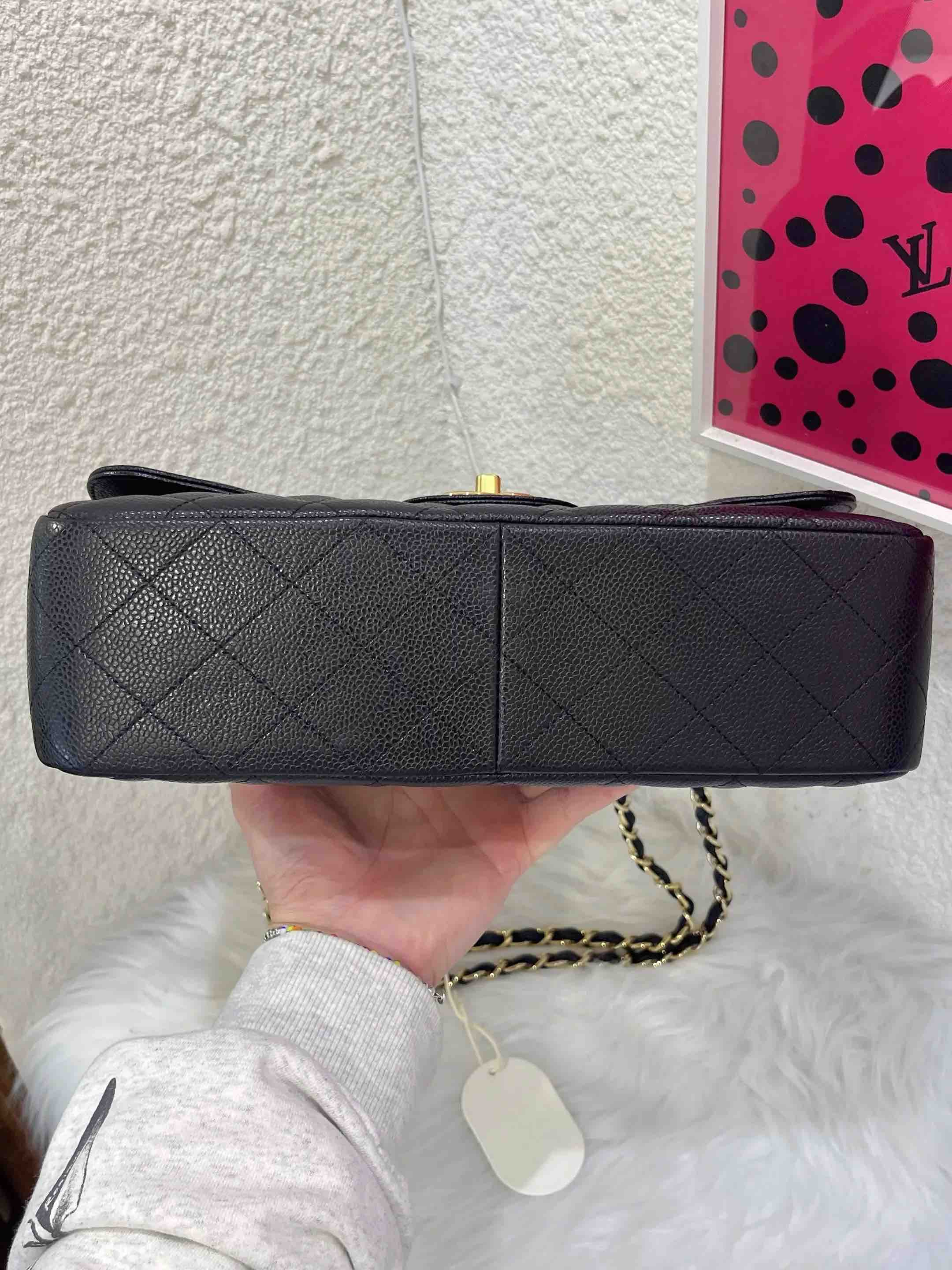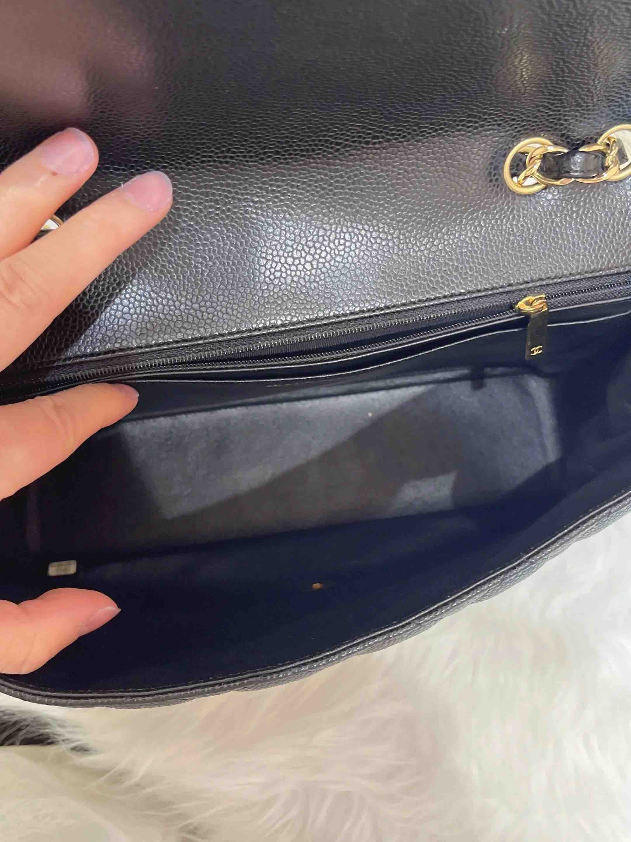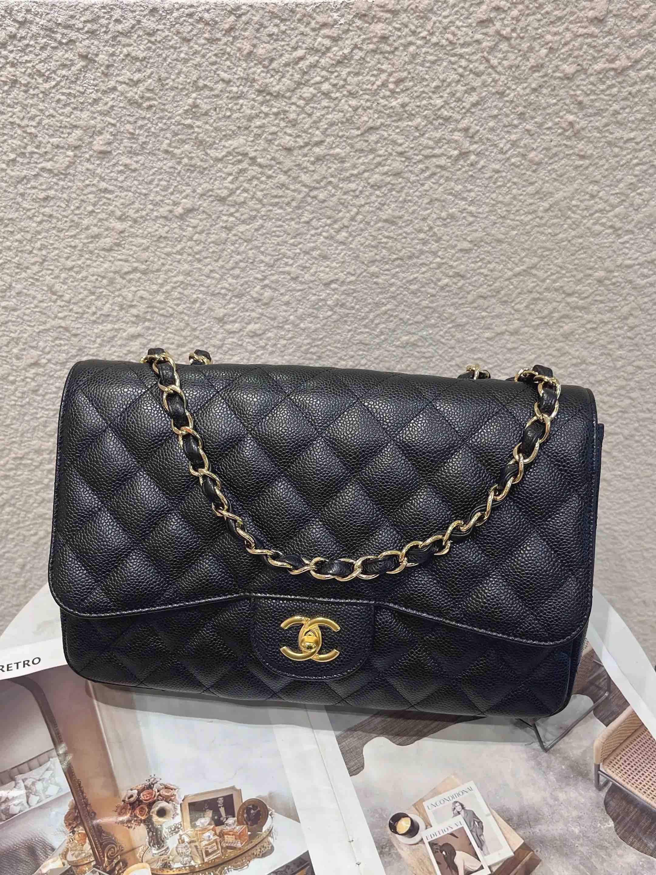 【商品详情】正品二手 Chanel CF jumbo 黑金 荔枝纹牛皮 单肩包🧚🏻♀️99新 30x20 镭射13开 配件:防尘袋。最飒的尺寸~