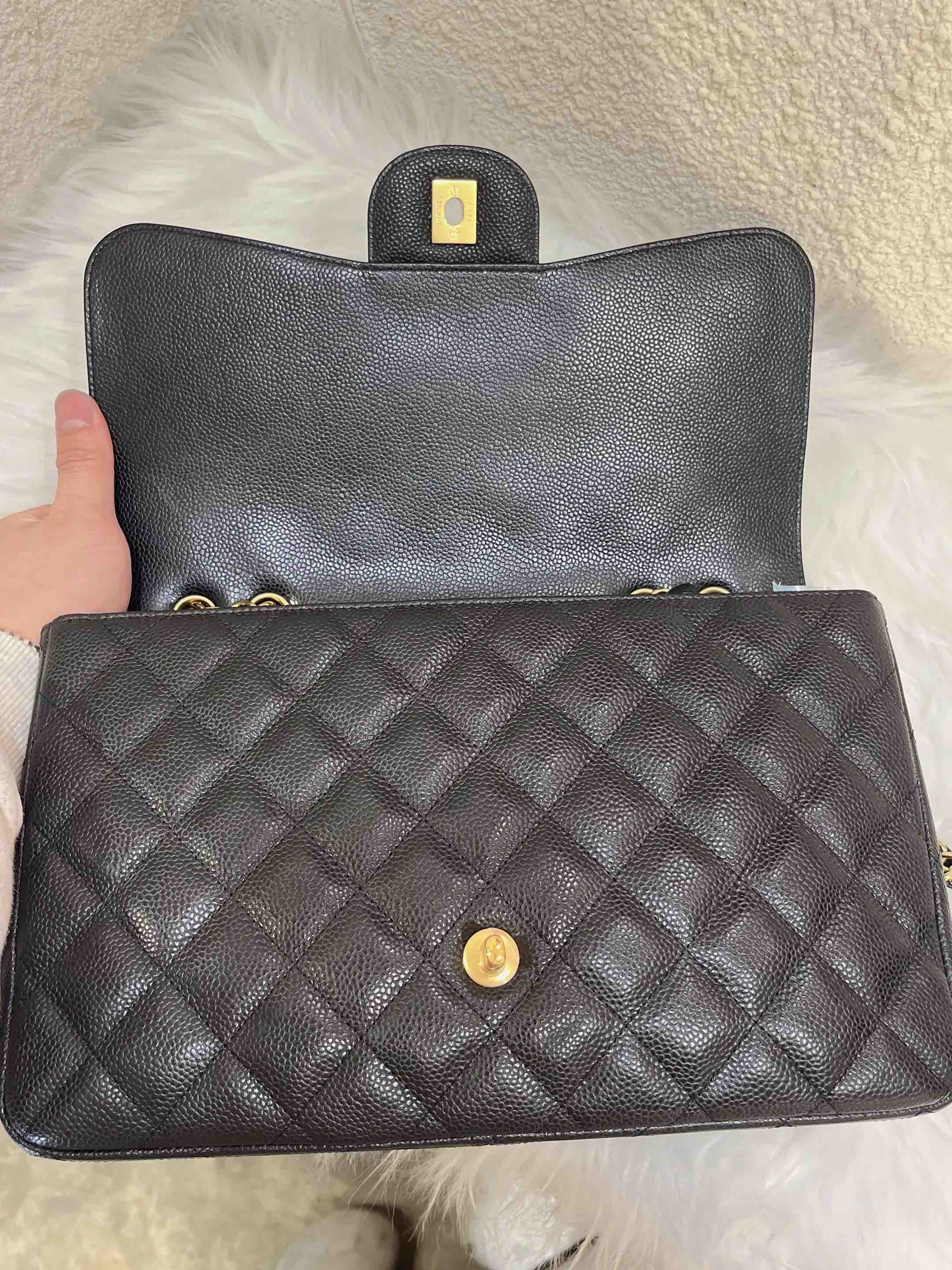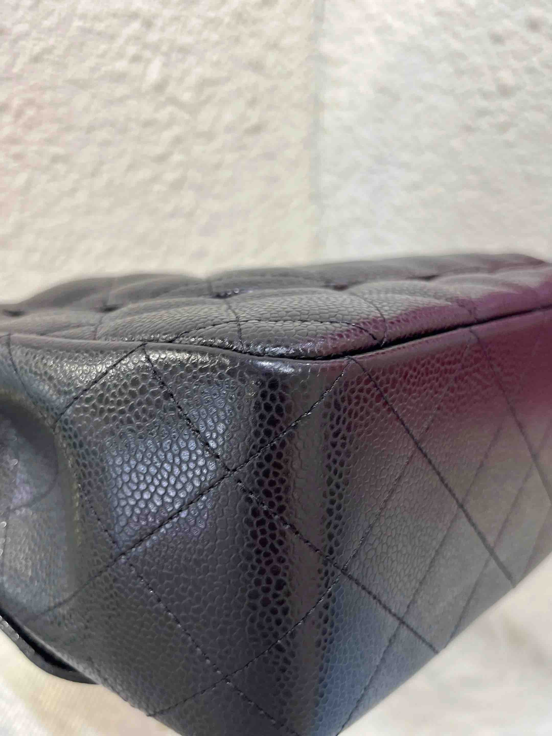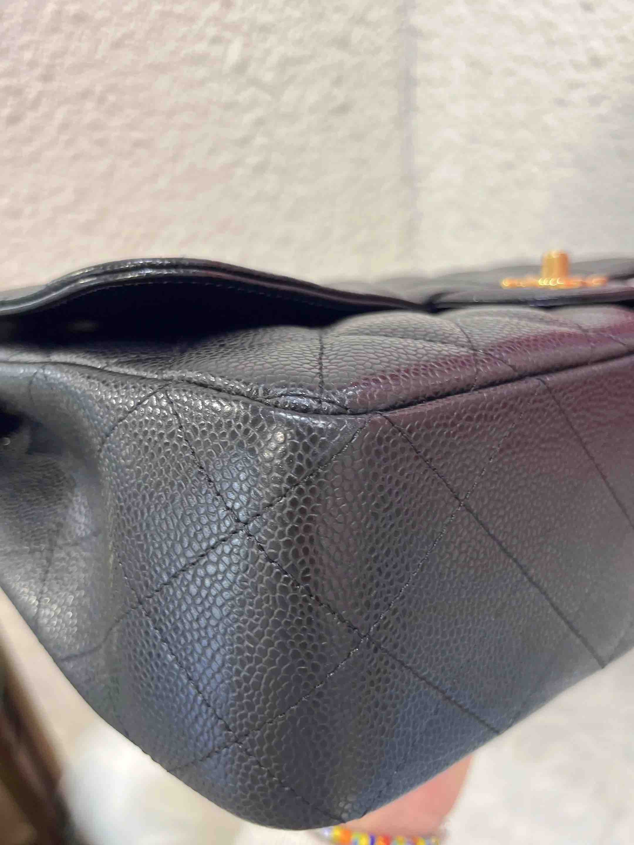 【商品详情】正品二手 Chanel CF jumbo 黑金 荔枝纹牛皮 单肩包🧚🏻♀️99新 30x20 镭射13开 配件:防尘袋。最飒的尺寸~