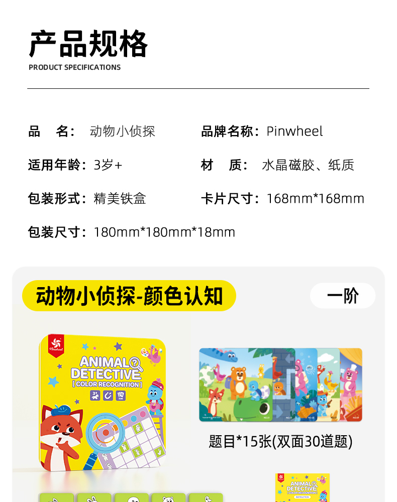 Pinwheel动物小侦探,早教思维启蒙盒(3岁以上)