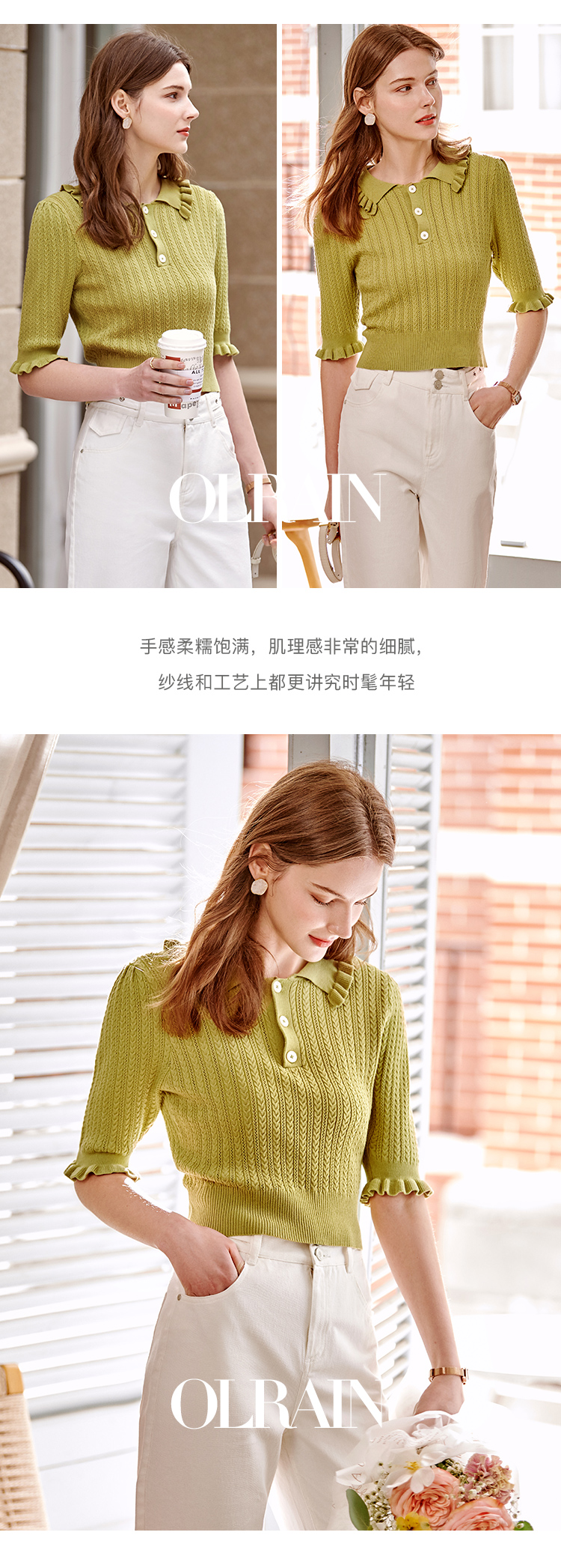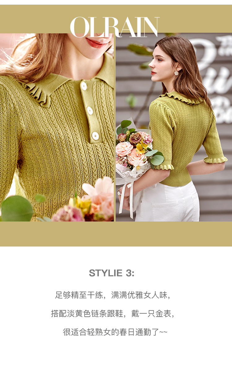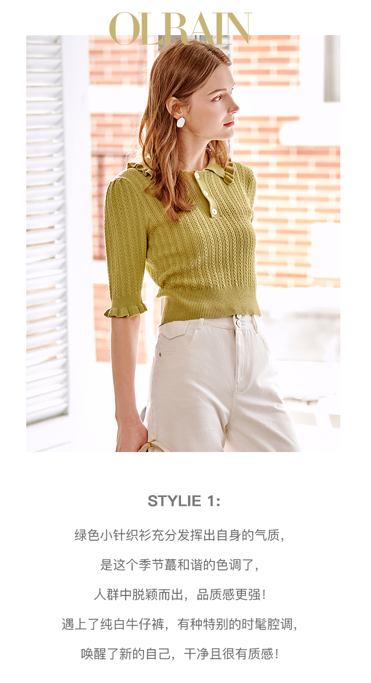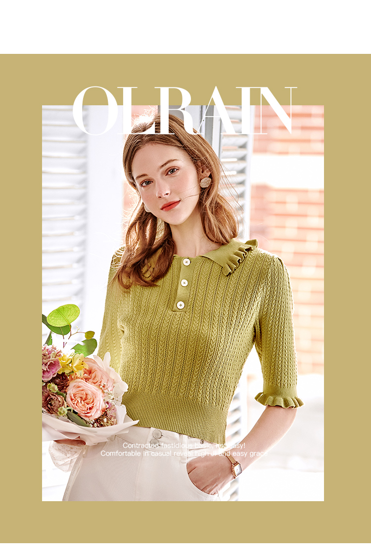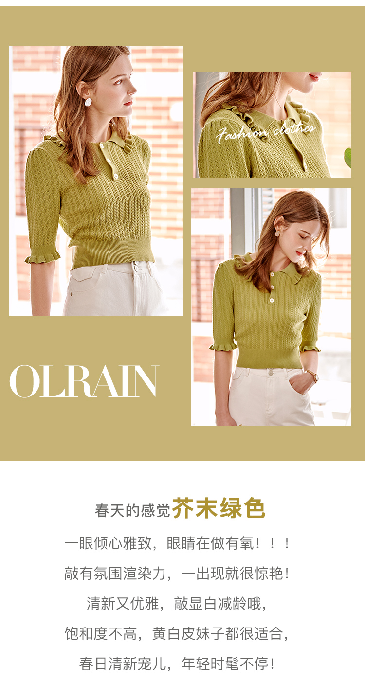 欧芮儿套头针织衫2021新款木耳边修身毛针织衫女薄款打底衫