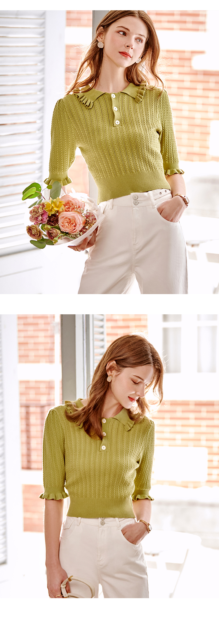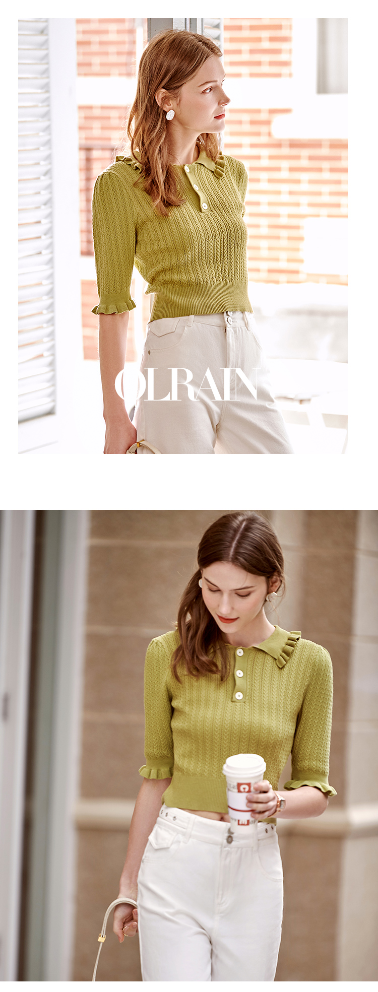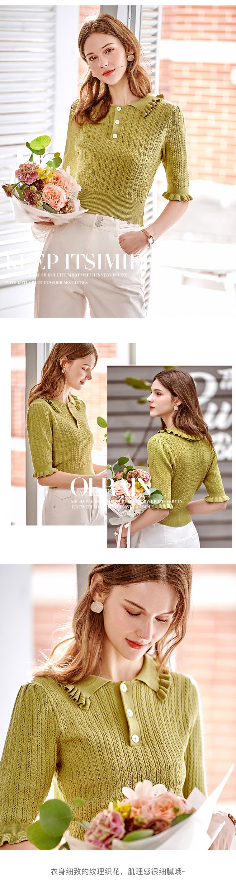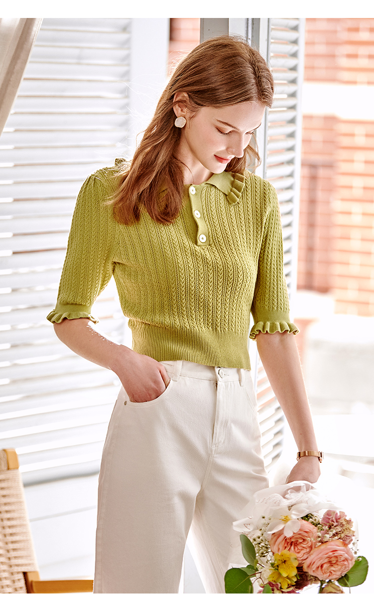 欧芮儿套头针织衫2021新款木耳边修身毛针织衫女薄款打底衫