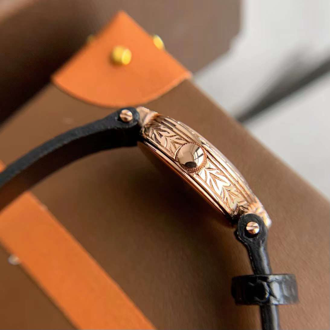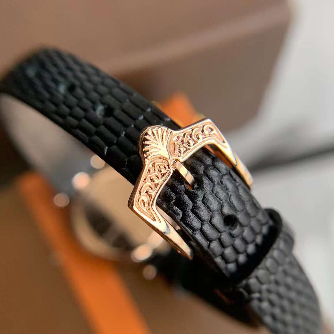 表盘:银真度金,月花桂雕刻。(施华