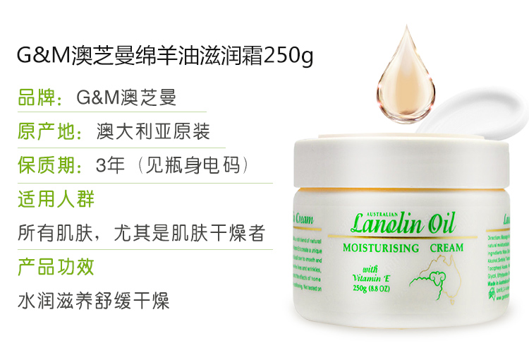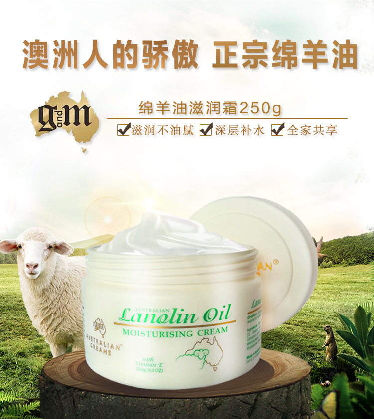 澳洲绵羊油面霜gm250g补水保湿身体乳平价护手霜乳液女 一罐用全身!