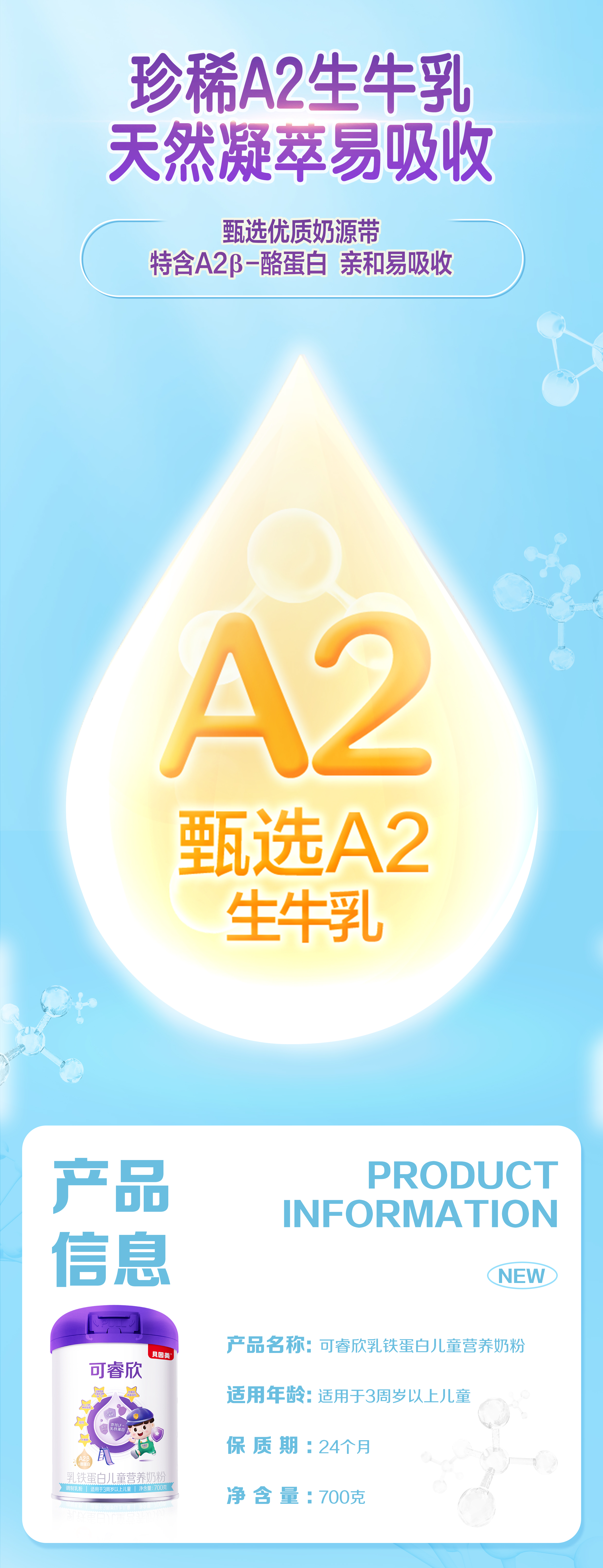【2罐装】贝因美可睿欣乳铁蛋白儿童营养奶粉700克 +送亲肤绵柔巾*3包