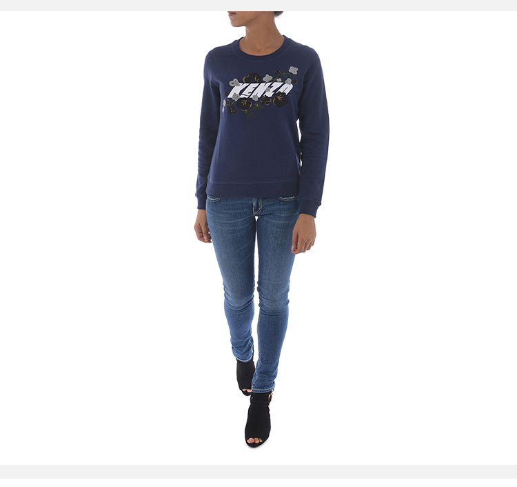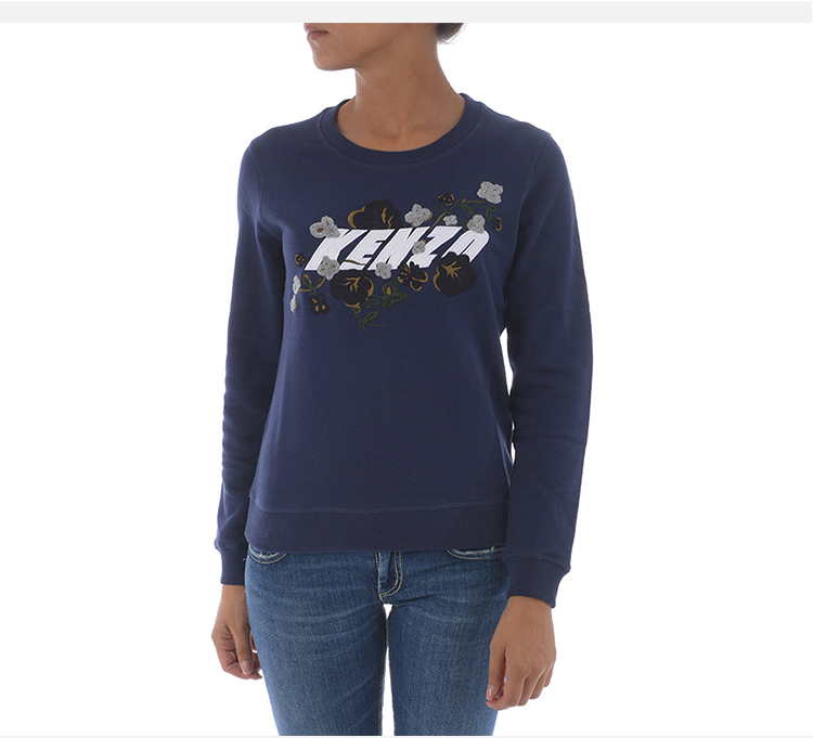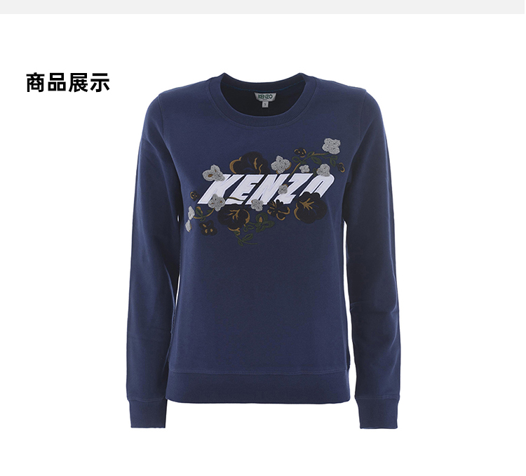 KENZO 高田贤三 女士棉质刺绣徽标罗纹圆领长袖运动卫衣 深蓝色 F762 SW880 952 77