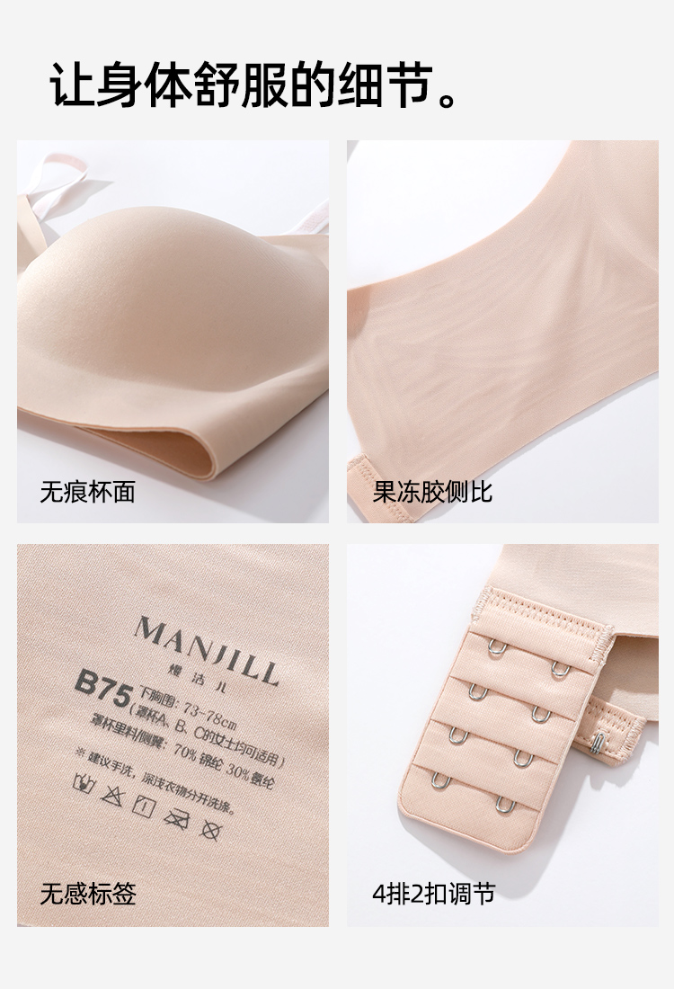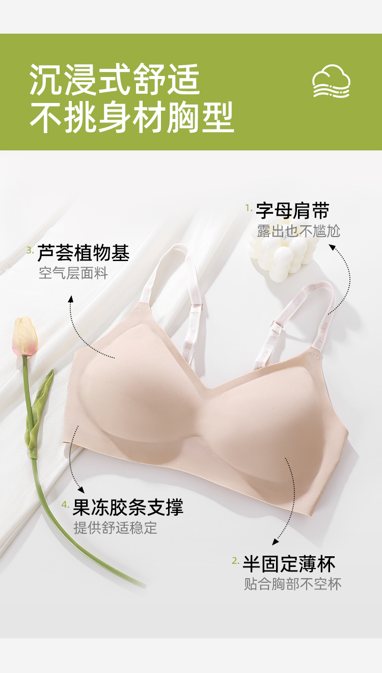 【拍2件199元】熳洁儿 无尺码内衣舒适无痕果冻软支撑字母肩带百搭商场同款24201551