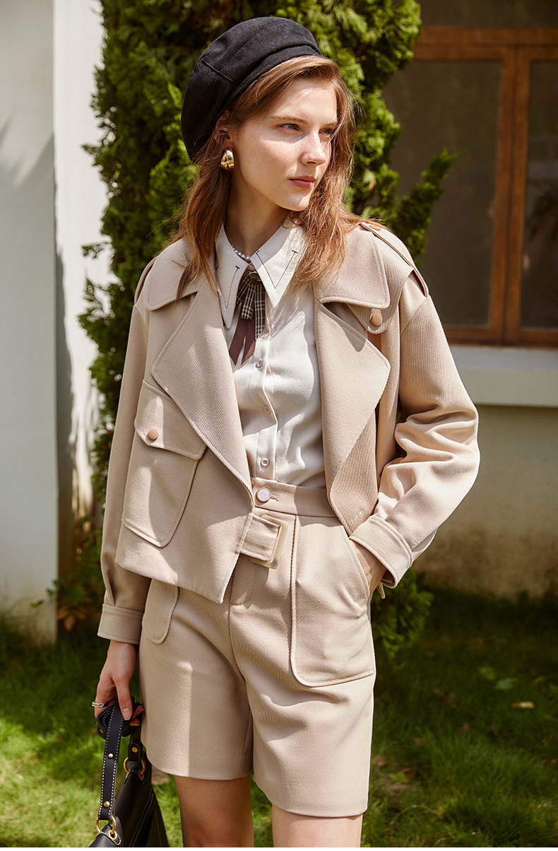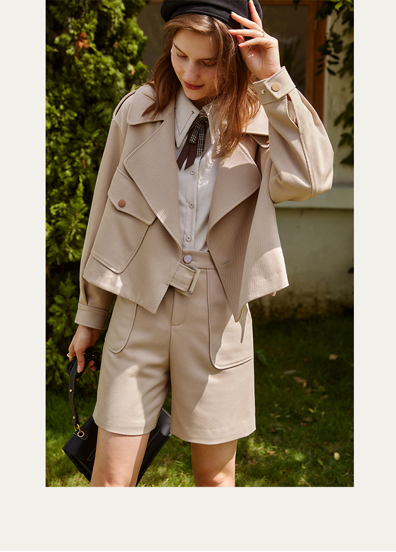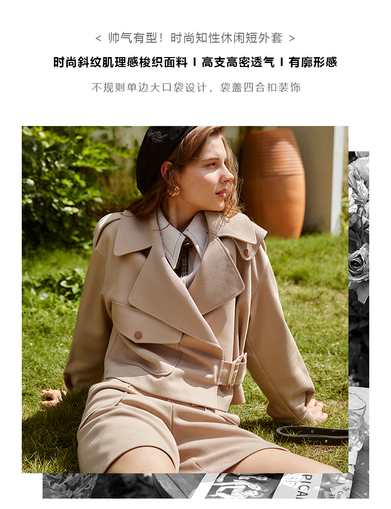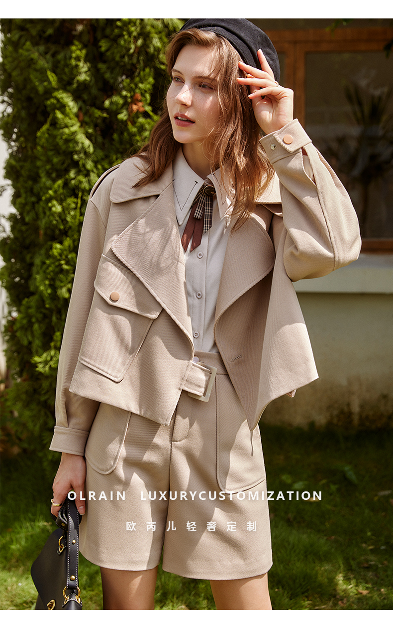 欧芮儿短款西装外套女新款2021时尚不规则大翻领设计感短外套