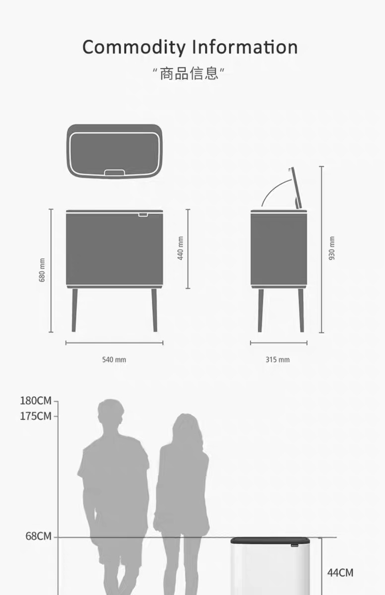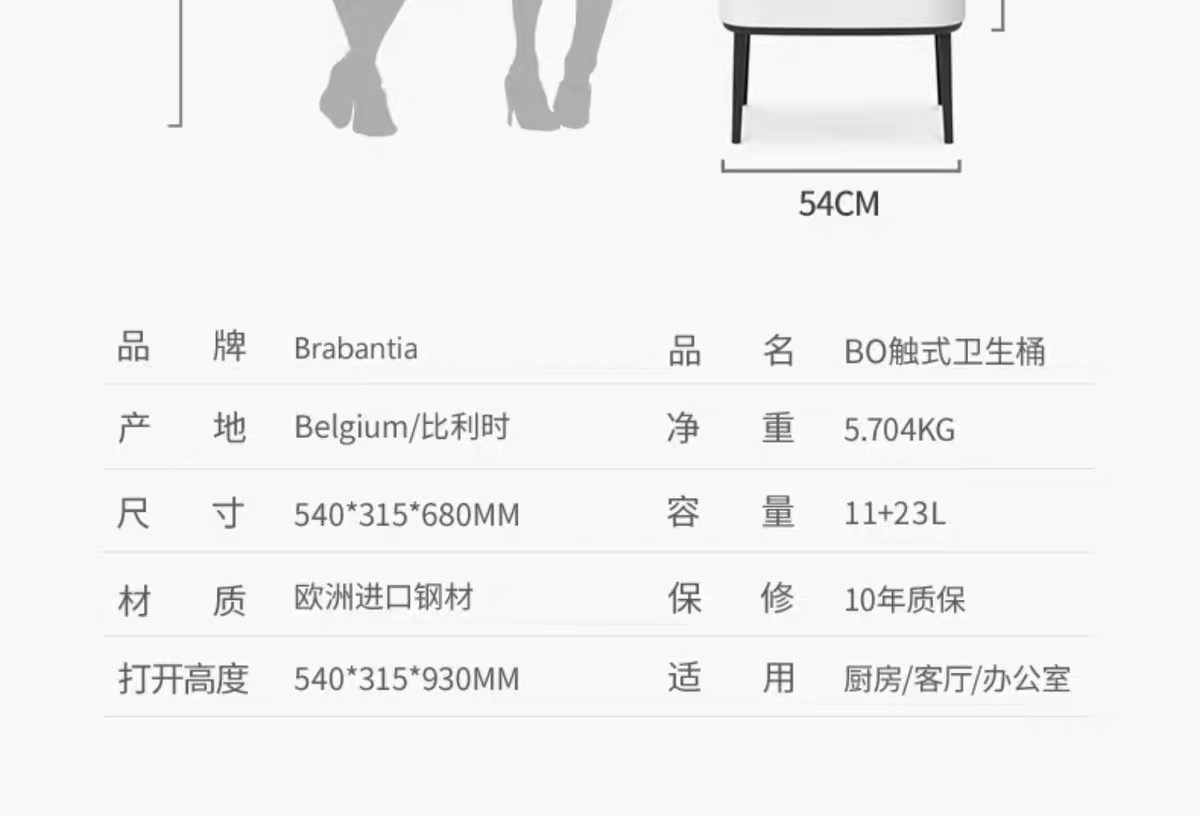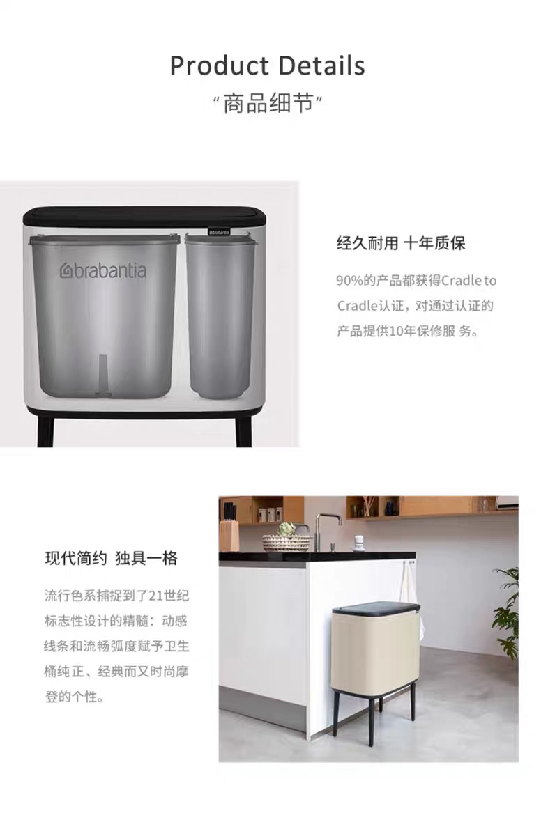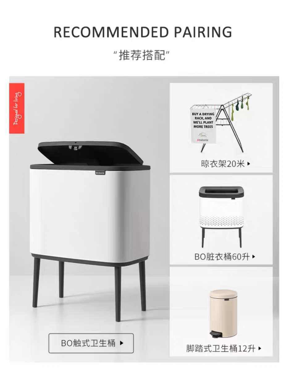 brabantia柏宾士BO触式垃圾桶进口家用大容量分类高颜值筒卫生桶