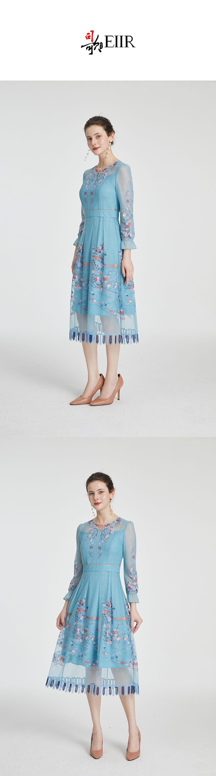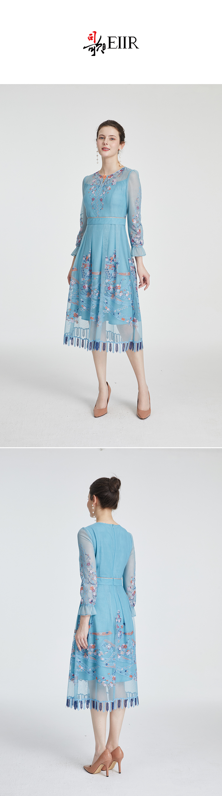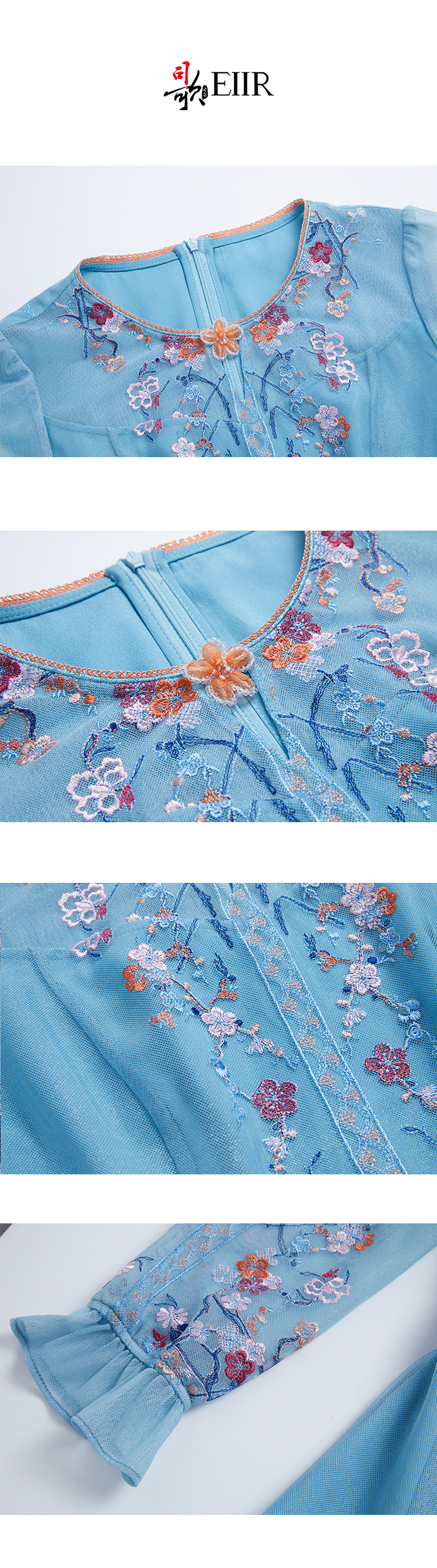 司歌刺绣长袖国风长袖网纱显瘦弹力连衣裙A881232