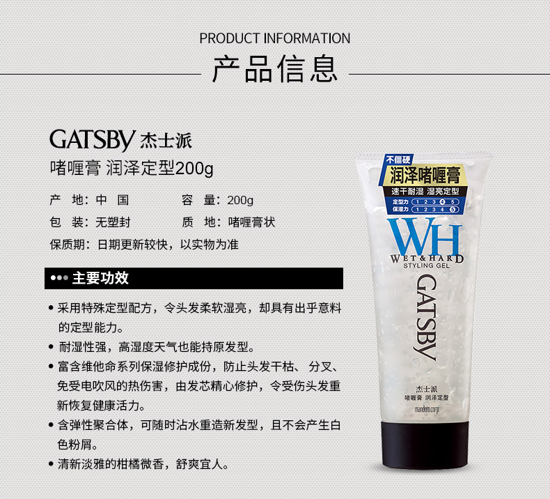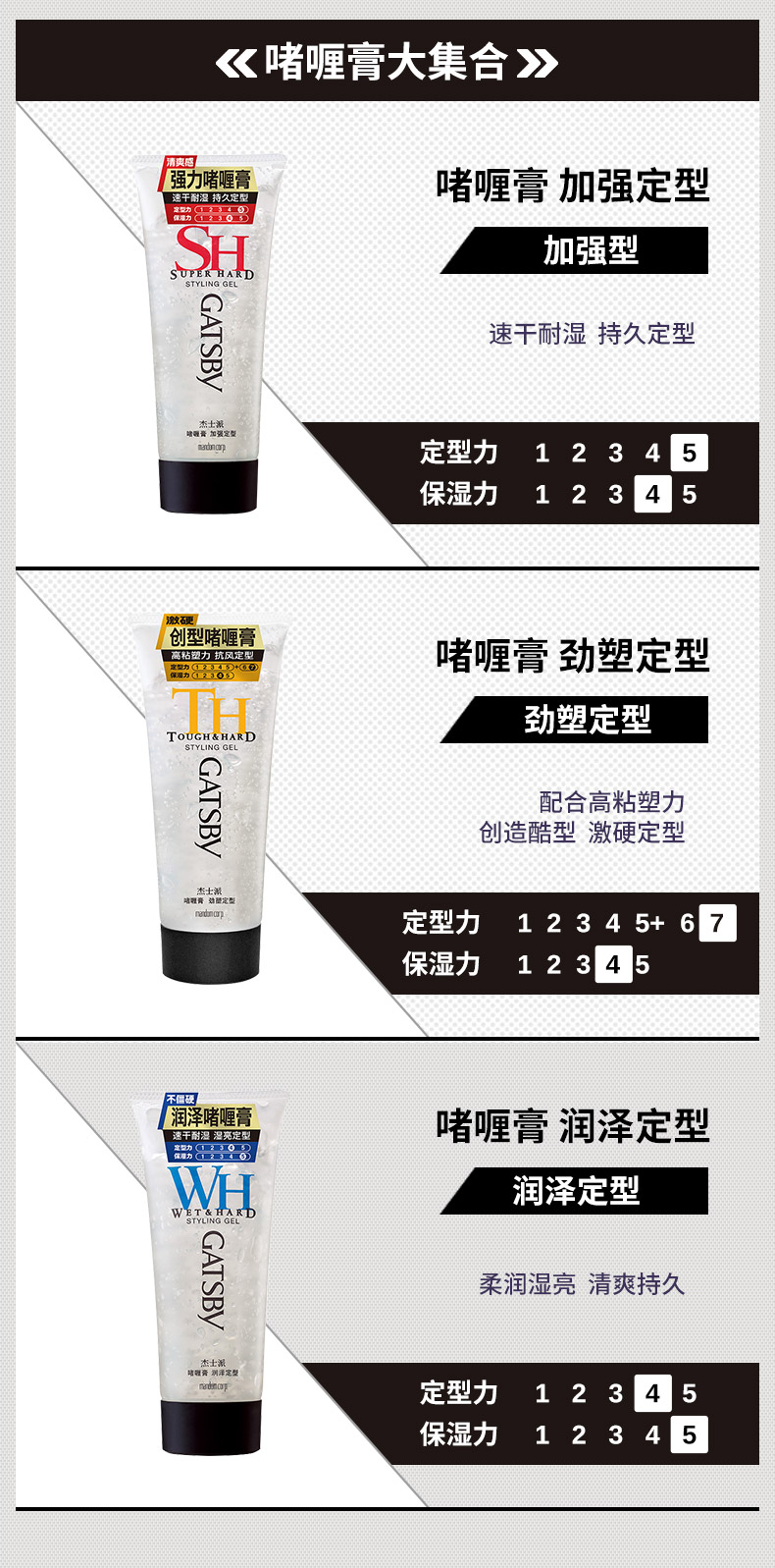 GATSBY杰士派 啫喱膏200g润泽定型 清爽蓬松定型速干耐湿无白屑